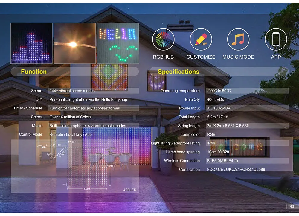 【Программируемое освещение занавес】 Светильники для штор на открытом воздухе в помещении могут создавать огни с любым рисунком и текстом через приложение (Hello Fairy) . Идеально подходит для того, чтобы написать имя своей возлюбленной и то, что вы хотите сказать ей во время предложения, свадьбы и годовщины