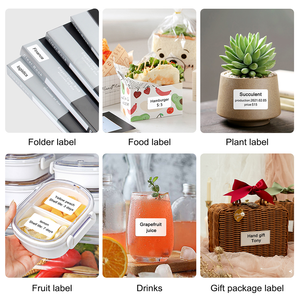 Машины для изготовления этикеток широко используются при организации товаров для дома, классификации косметических предметов, наклеек на банки, классификации школьных и офисных файлов, хранении, маркировке, маркировке даты еды, идентификации кабеля, идентификации личного предмета, бирки с именами и т. д. Идеальный предмет для возвращения в школу.