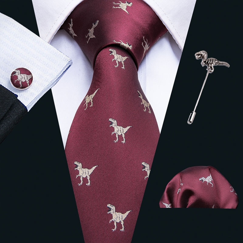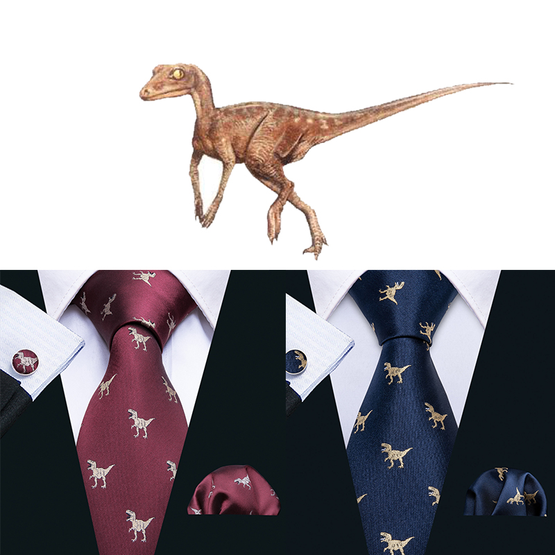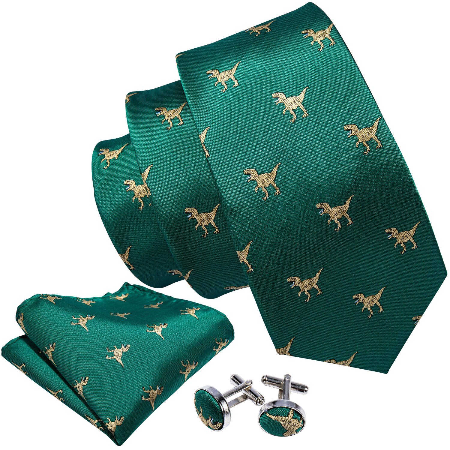 Штырь отворотом зеленое золото динозавр Для мужчин s галстук носовой платок запонки набор 8,5 см Neckpin Бизнес шелковые галстуки для Для мужчин от Barry.Wang дизайн