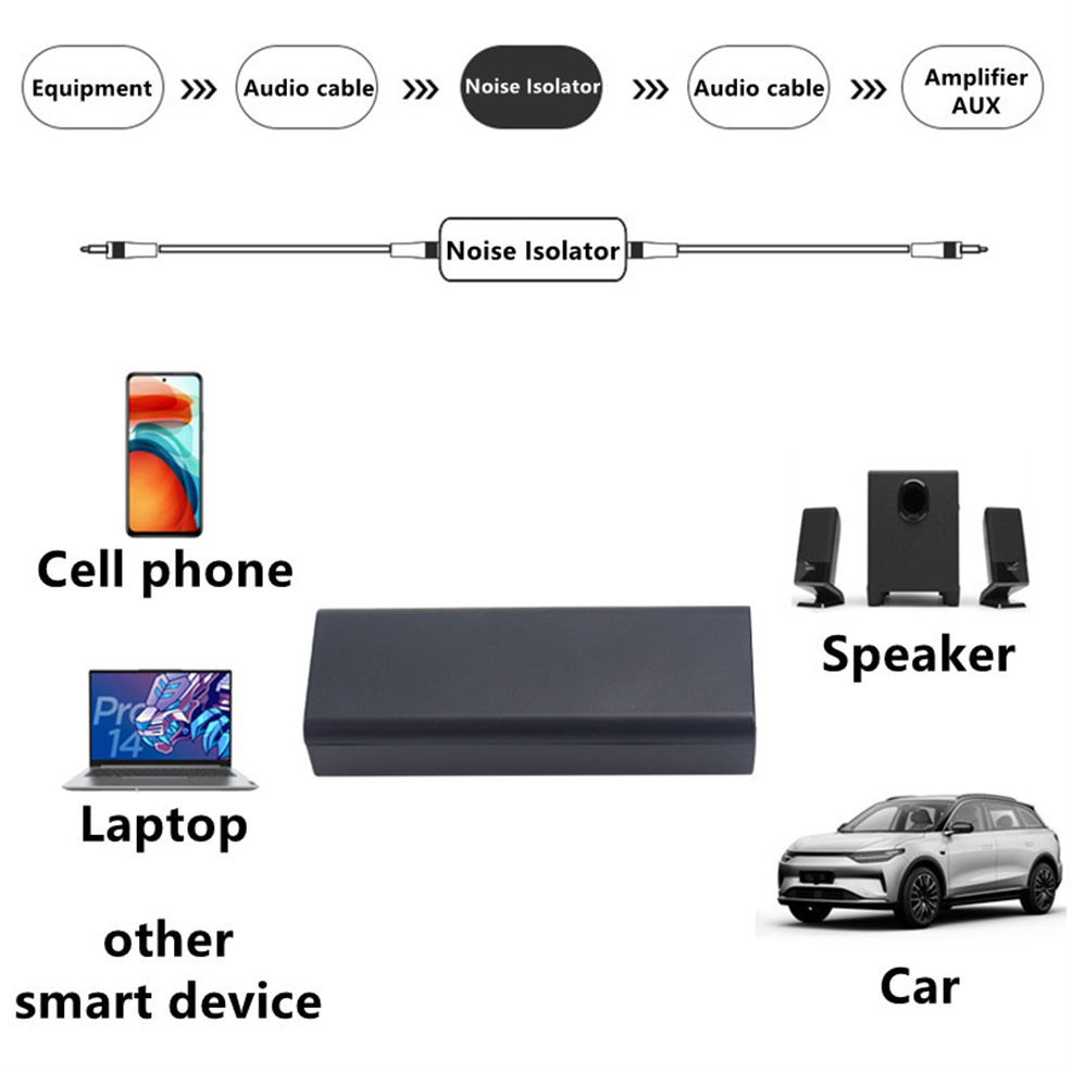 The working principle of this noise isolator is to achieve a clear speech, music by eliminating the current noise in some car speakers, home stereo systems.