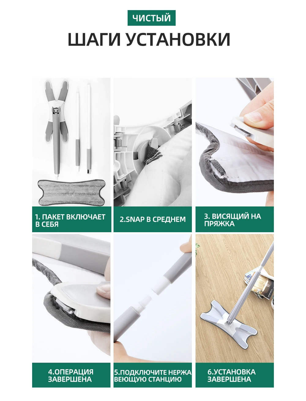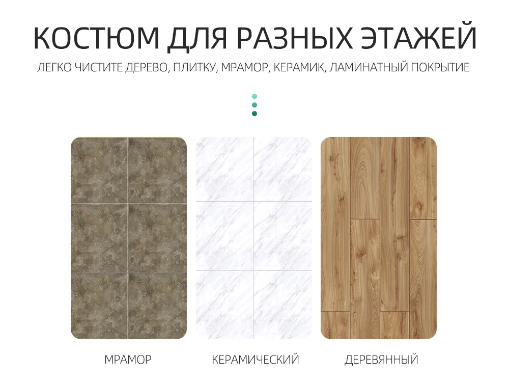 3 сменных салфетки из микрофибры: в том числе 3 мягкие, многоразовые и моющиеся салфетки из микрофибры, которые быстро впитывают воду, легко удаляют волосы и масляные пятна. Используйте влажную для глубокой очистки или сухую для удаления пыли. Идеально подходит для ванной, кухни, гостиной и офиса. Наша универсальная швабра подходит для всех типов гладких поверхностей, таких как плитка, дерево, твердые породы, ламинат, бетон, каменные полы и стеклянные окна.