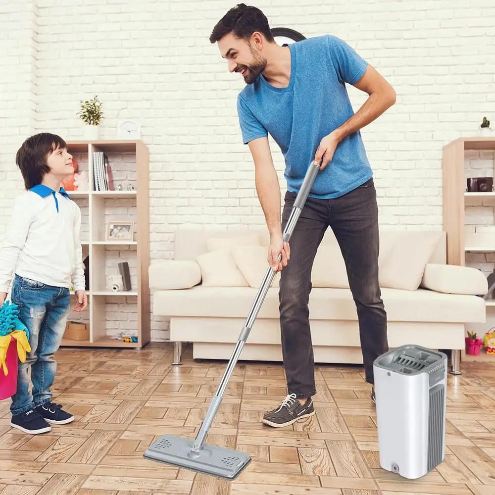 3. Универсальное Использование: набор швабры и ведра для плоского пола подходит для использования на кухне, в гостиных, спальнях, ванных комнатах, коридорах, садах, офисах и многих других местах.
