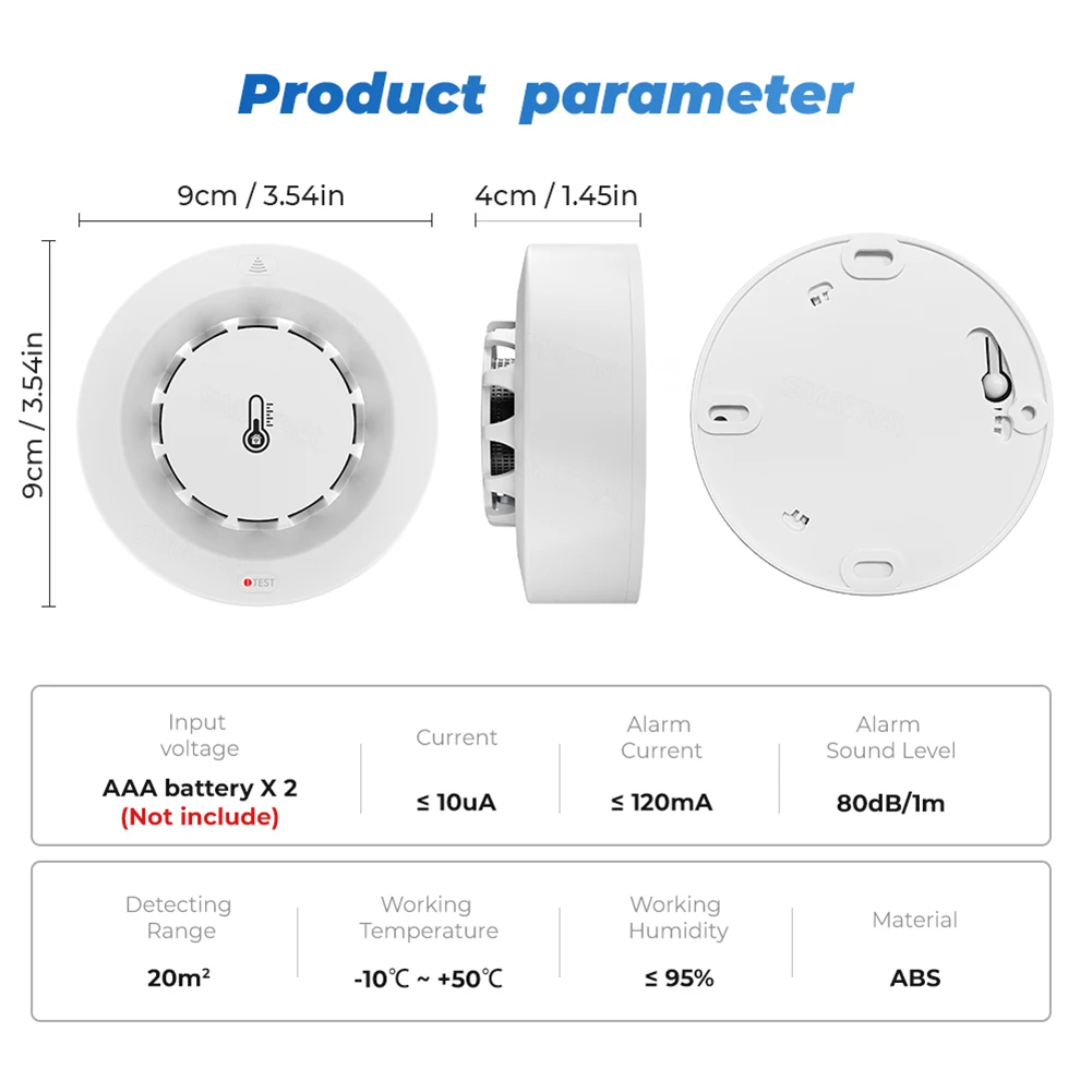 3. Особенности:Детектор дыма напоминает опасную концентрацию дыма во времени, получая освобожданным потенциальной опасности и экономических потерь. Голосовое управление, совместимое с Amazon, Google Home, Tmall Genie и Xiao Ai. WIFI + Bluetooth-совместим с 2 способами подключения, может быстрее подключаться к сети. Подключение к сети в 2 раза быстрее, чем использование только Wi-Fi.