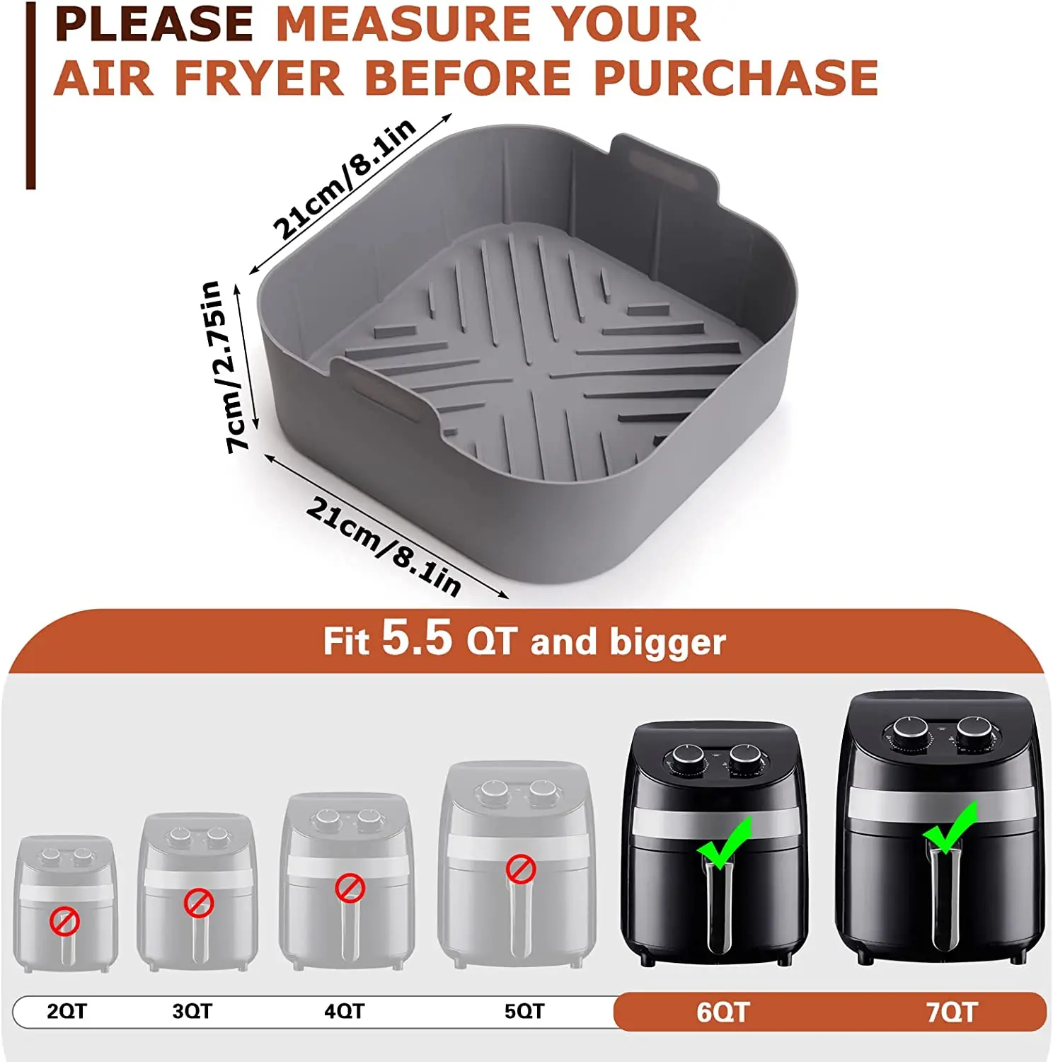 • Уникальные аксессуары для фритюрницы: Силиконовая чаша для фритюрницы идеально подходит для фритюрницы и обеспечивает чистую и термостойкую поверхность для корзины. Наши силиконовые горшки для фритюрницы имеют ручки с обеих сторон, что позволяет легко подобрать сковороду.