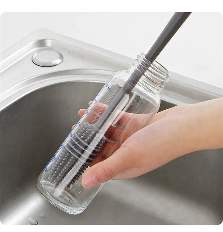 3. тонкая и длинная силиконовая щетка подходит для высоких контейнеров с отверстием для бутылок меньшего диаметра. Благодаря длинной ручке и гибким силиконовым щетинкам легко удаляется стойкая грязь из укромных уголков и трещин.