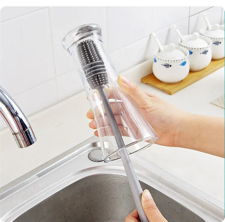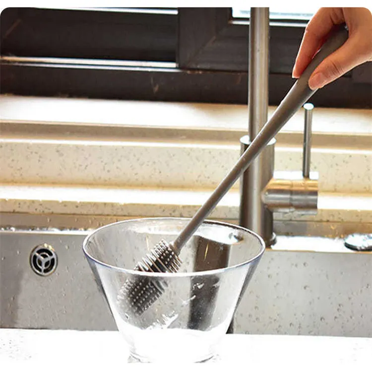 Силиконовая щетка для чистки бутылок с молоком Щетка для чистки бутылок с длинной ручкой Очиститель для бутылок с водой Щетка для чистки стеклянной чашки Инструменты для чистки кухни