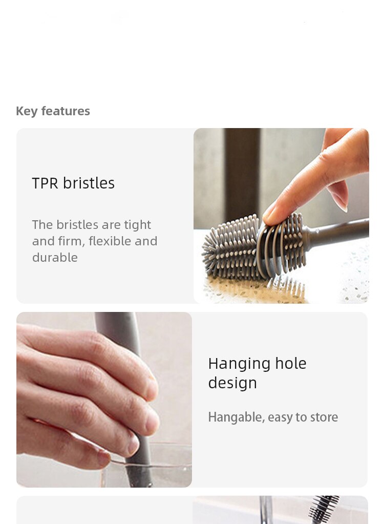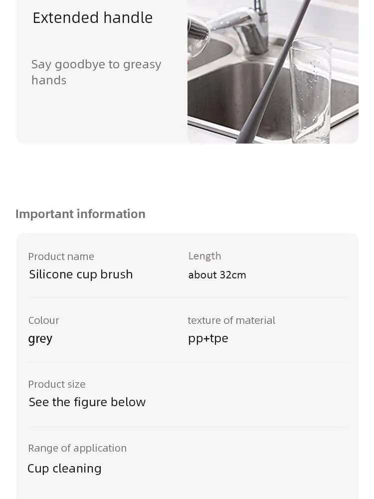 Silicone material long handle cup brush, it is very durable and not easy to break off and fall apart.
