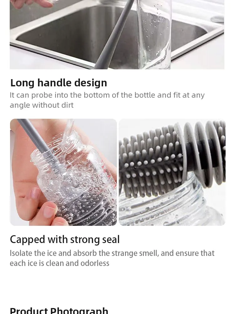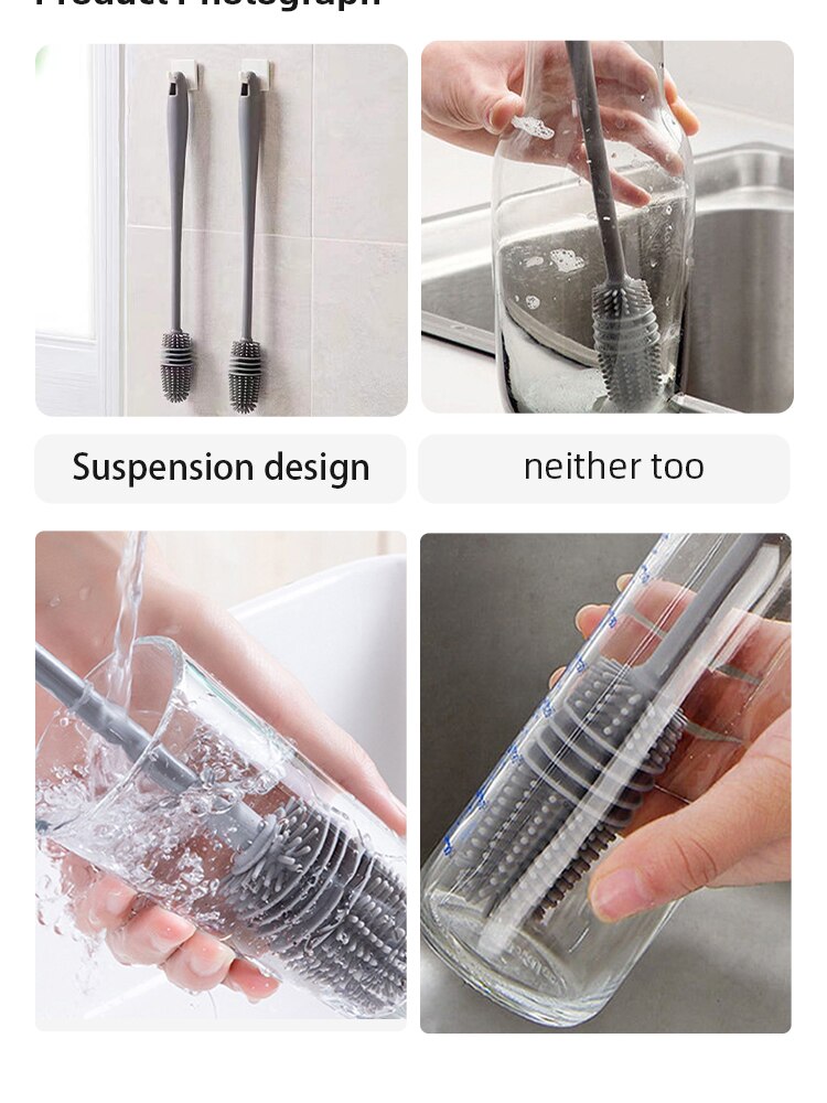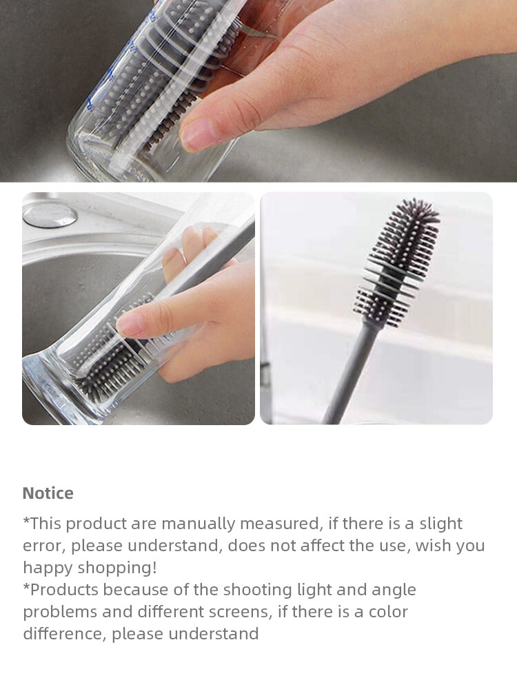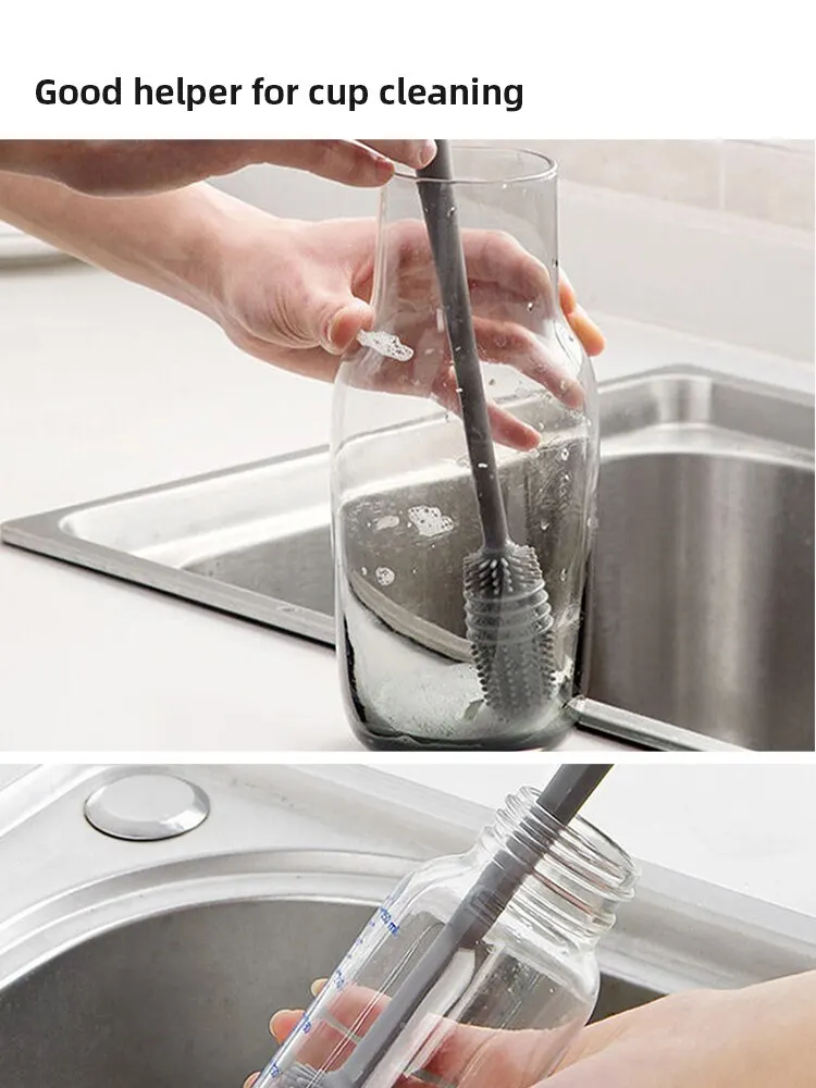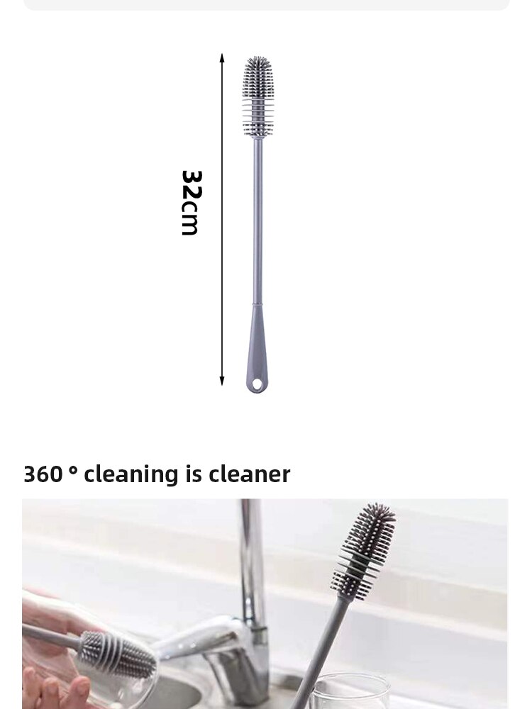 The silicon bottle brush will make sure keep your favorite vase, glass water bottle, pitcher, blender and glassware no scratches on their surface.