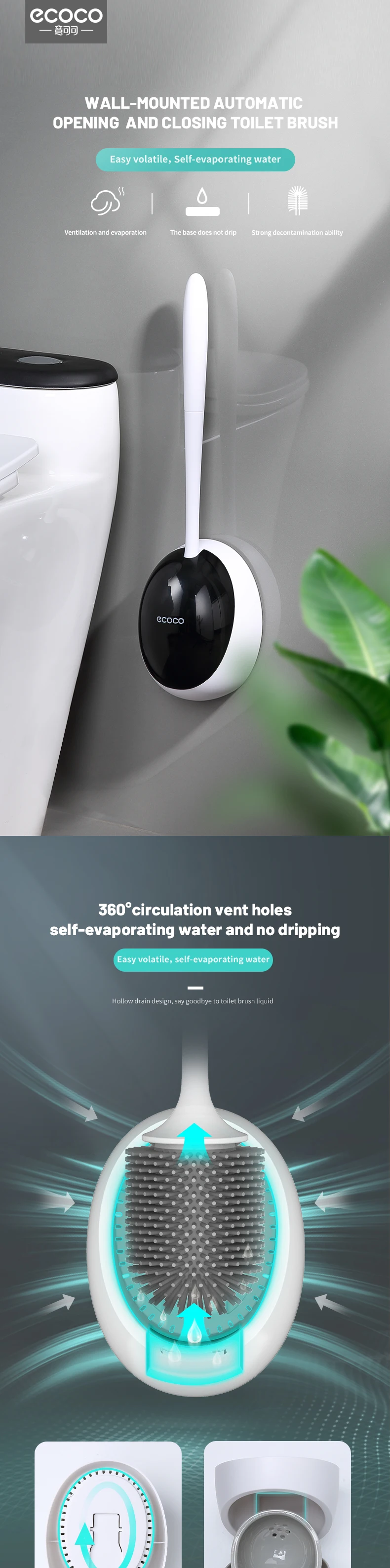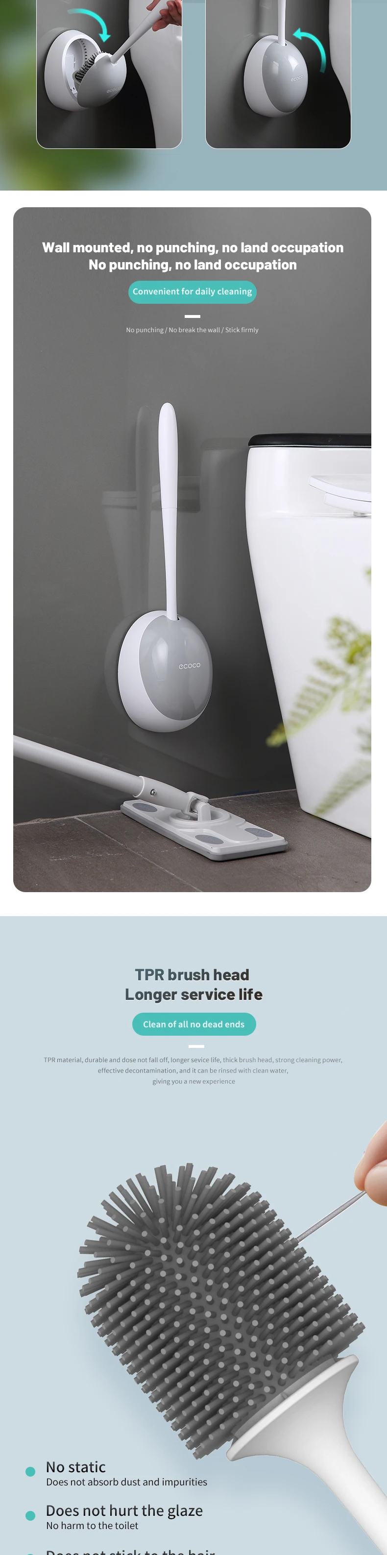 Силиконовая щетка ECOCO, щетка для туалета, инструменты для быстрого слива, инструменты для очистки туалета, Настенные Бытовые аксессуары для туалета, ванной комнаты