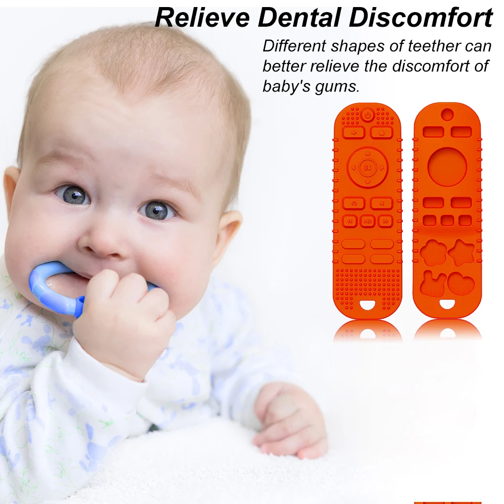 3. Форма дистанционного управления:Ваш ребенок получит 1 резинку с дистанционным управлением. Игрушки для зубов яркие цвета. Это может улучшить распознавание цветов и когнитивные способности ребенка. Подходит для детей 3-6 месяцев и 6-12 месяцев.