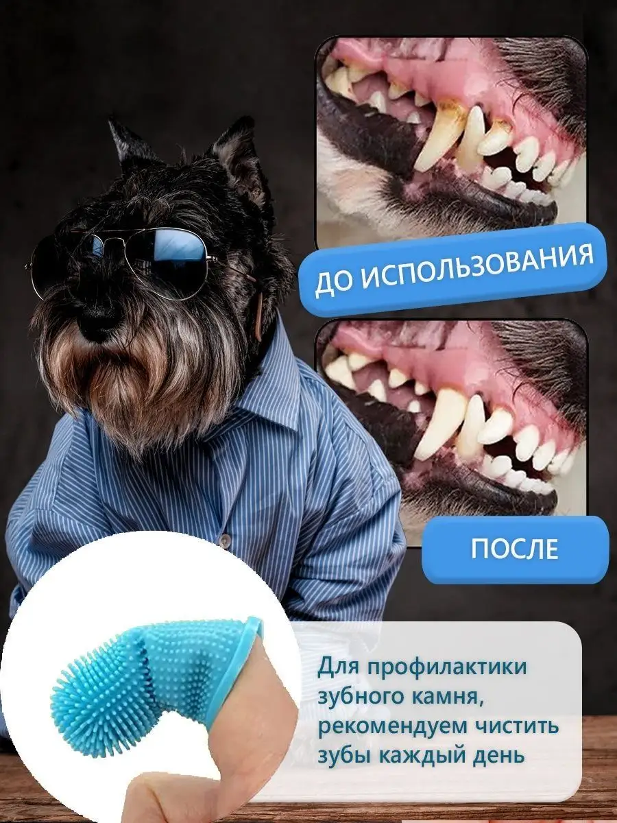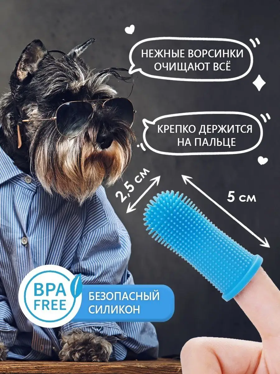 Силиконовая зубная щетка для собак и кошек на палец