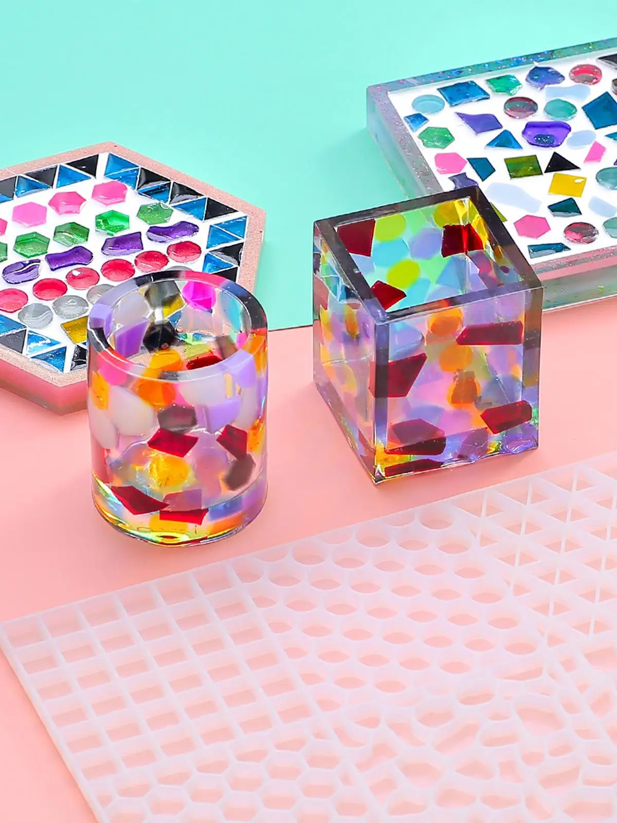 Силиконовые формы с мозаичным узором для подставок из эпоксидной смолы, подставки для украшения дома, подставки из мелких частиц E2H0