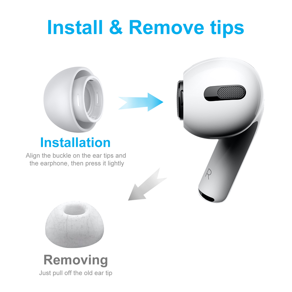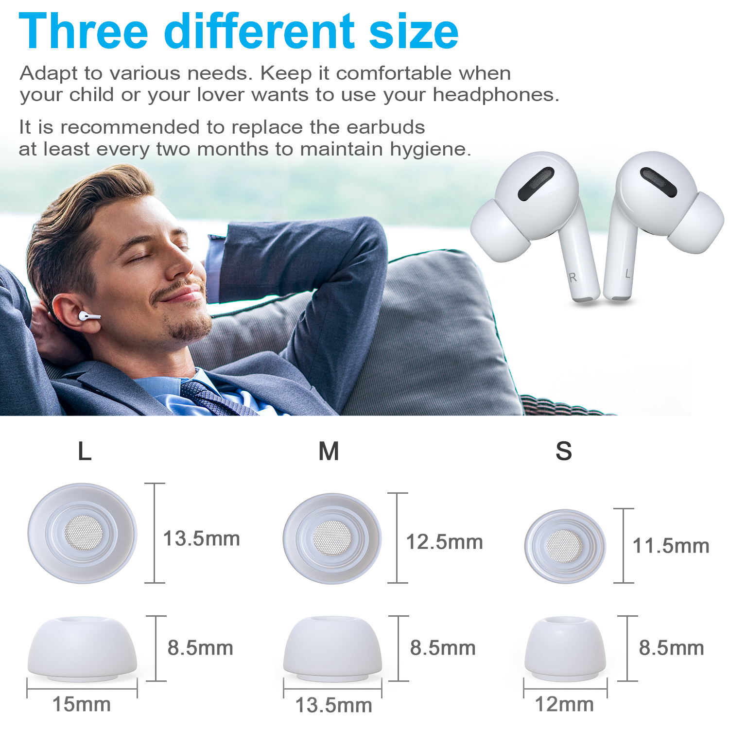 3.No easy to fall out. We have three pairs of the item, includes small, medium and large, fit for your earphone perfectly,very easy and firmly insert in your ear. all size suitable for Apple Airpods Pro bluetooth earphone.
