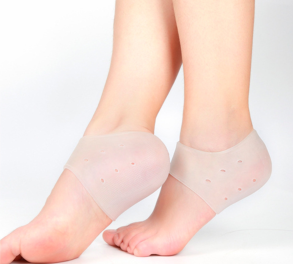 Описание: Силиконовые носочки накладки от трещин на пятках - это отличный аксессуар, избавляющий от неприятных ощущений в пятке при ходьбе, увлажняют и омолаживают кожу пяток, способствуют смягчению кожи и предотвращают ороговение. Рекомендуется использовать напяточники с кремом. Силиконовая защита для пяток незаменимый атрибут в уходе за кожей ног. Отлично помогает заботиться о пятках, уставших от каблуков и после долгого дня на ногах. Стимулируют восстановительные функции клеток.Если трещины на пятках не дают возможности вам наступать всей стопой, то силиконовые носочки, безусловно помогут Вам, наступать станет гораздо легче, боль уменьшится в разы, так как давление будет равномерно распределено, а не сконцентрировано на болезненных трещинах. Силиконовые носочки для пяточек изготовлены из медицинского силикона, пропитаны специальными минеральными маслами, которые смягчают кожу пяток. Ваши пяточки перестанут беспокоить мозоли и натоптыши.Подходит для женщин и мужчин, ведь благодаря своему эластичному материалу, носочки подойдут на любой размер ноги. В комплекте 1 пара (2 шт).Рекомендуется мыть в теплой мыльной воде (не больше 30 градусов), после промыть чистой холодной водой. Вытереть насухо или сушить естественным образом, например положив на сухое полотенце. (Ни в коем случае не на нагревательных элементах).