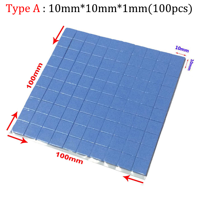 100 pcs Blue 10mm*10mm*1mm GPU CPU Heatsink Cooling Conductive Silicone Pad Thermal Pad