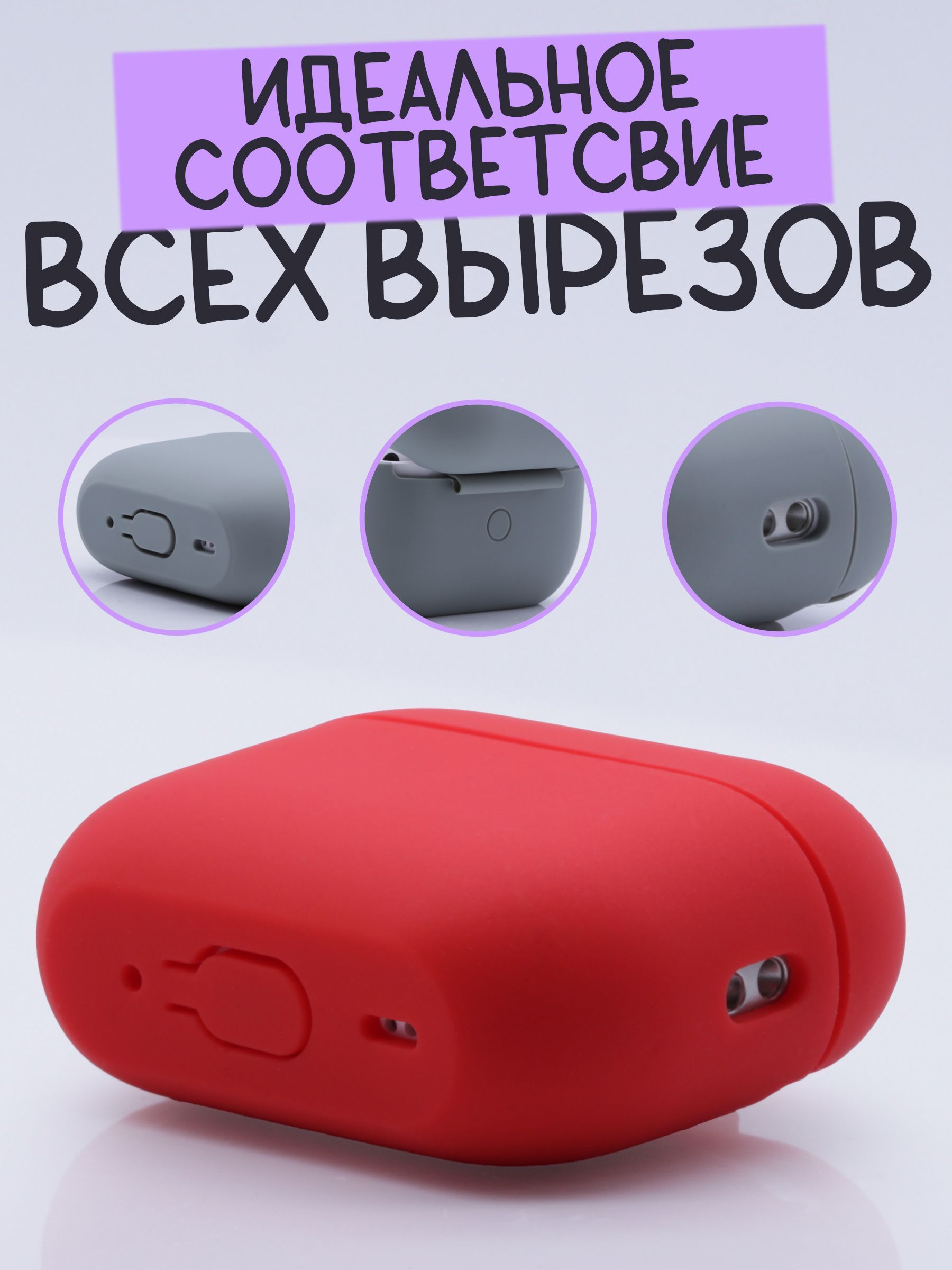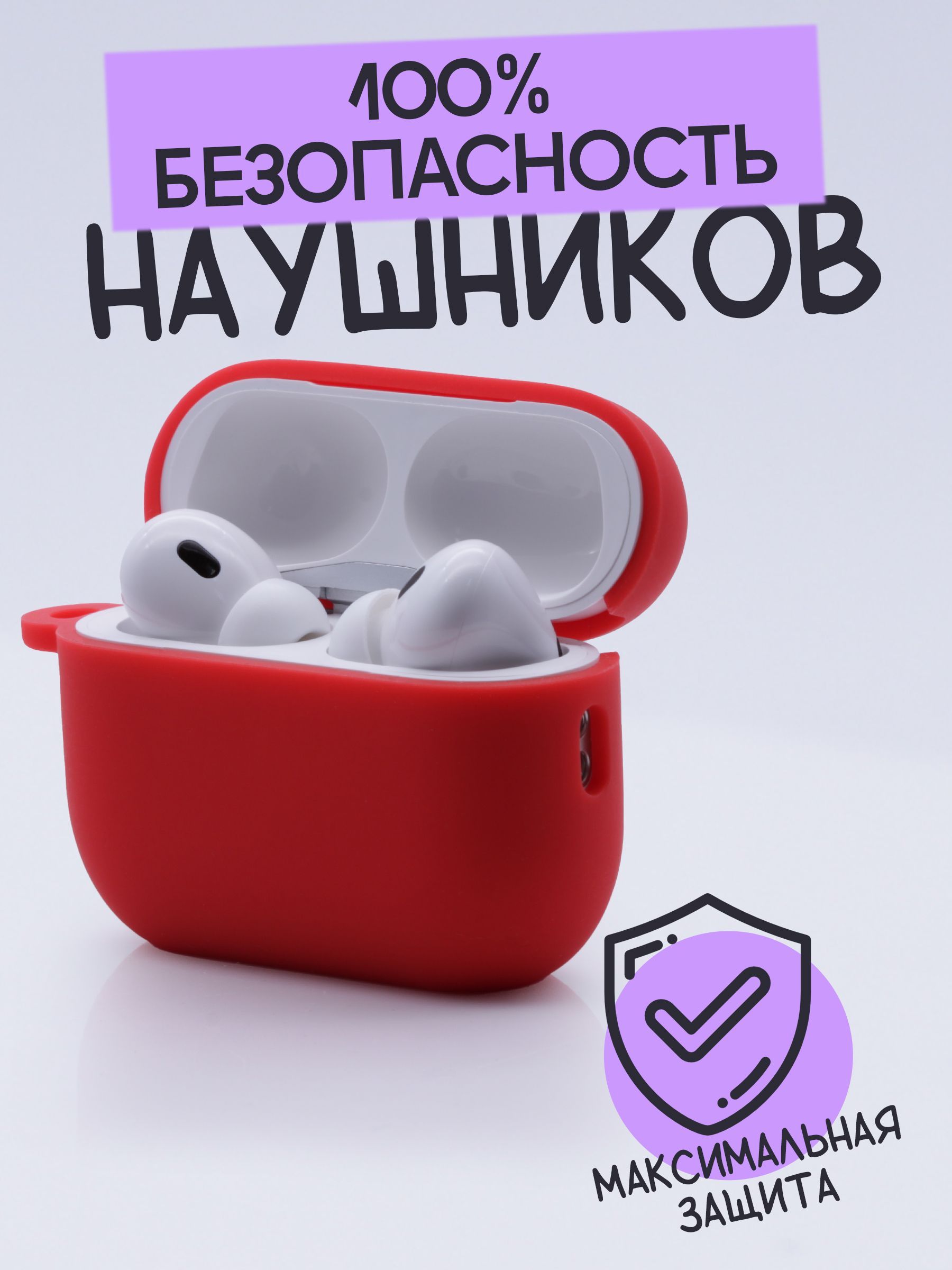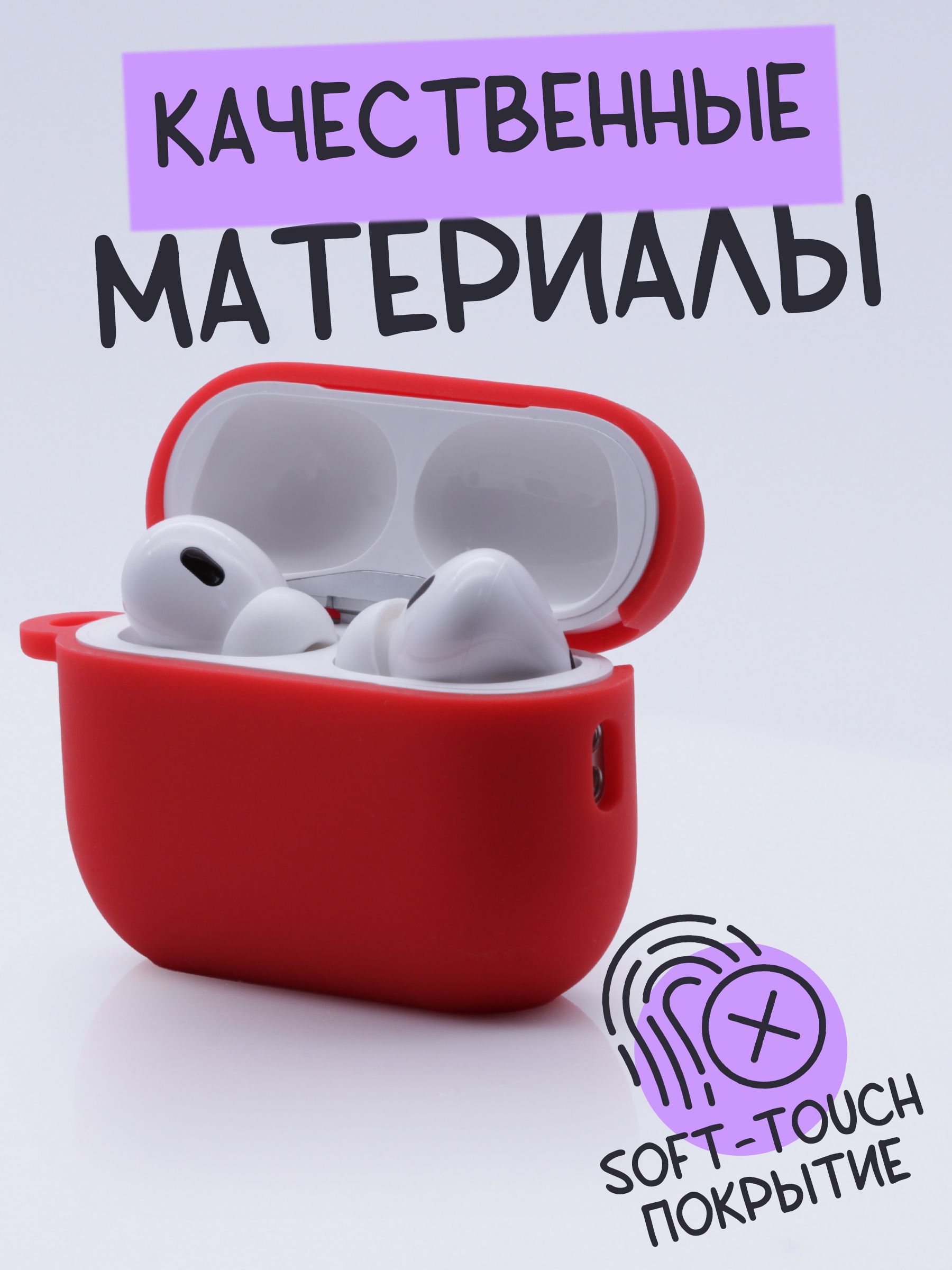 Силиконовый чехол AFIVE для наушников AirPods Pro Gen 2/ 2nd generation/ С КАРАБИНОМ В КОМПЛЕКТЕ/ цельный чехол матовый красный