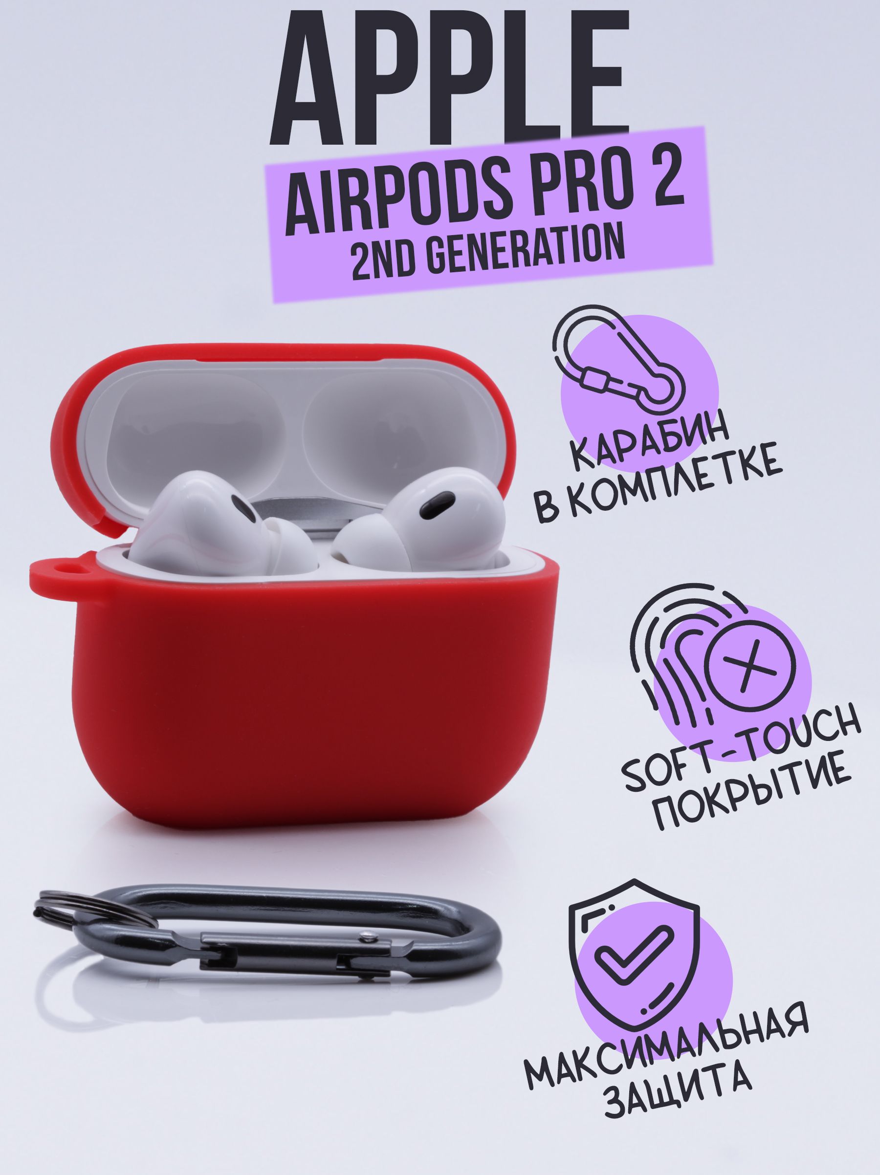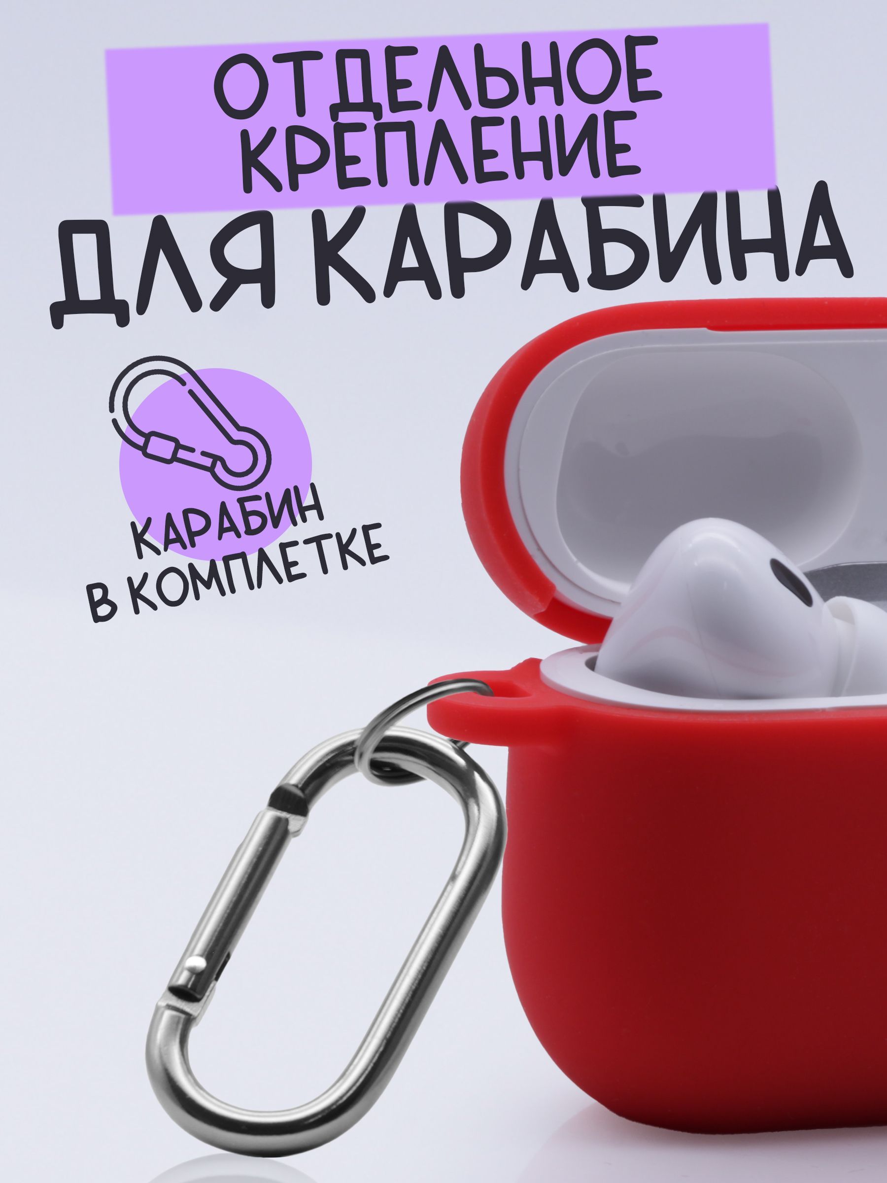 Индивидуальная упаковка - 1 шт., Силиконовый чехол AirPods Pro 2 - 1 шт.; Карабин - 1шт.
