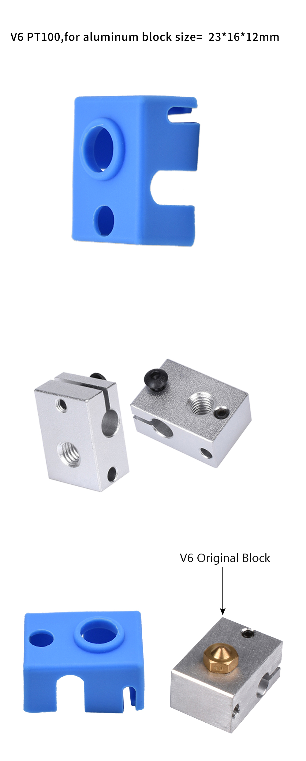 Применить: 3D V6 V5 MK8 V6PT100 Volcano PT100 Ender3 S1 Pro CR-6SE Алюминиевый блок