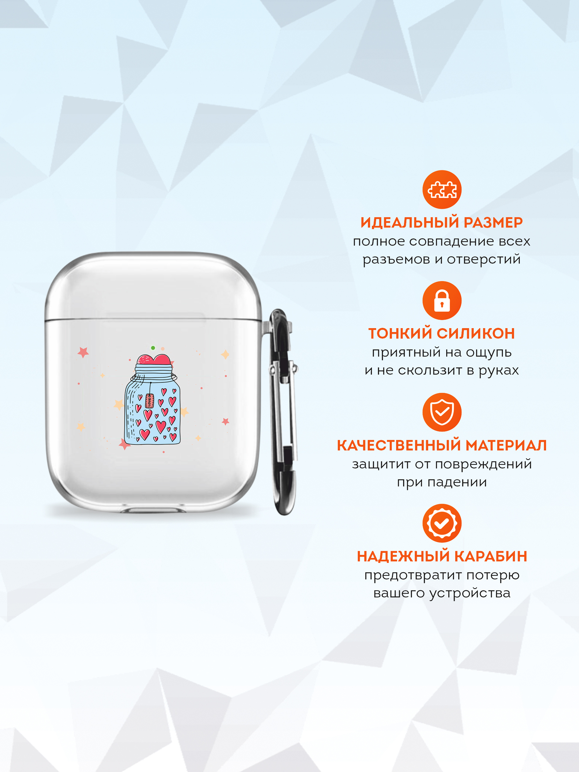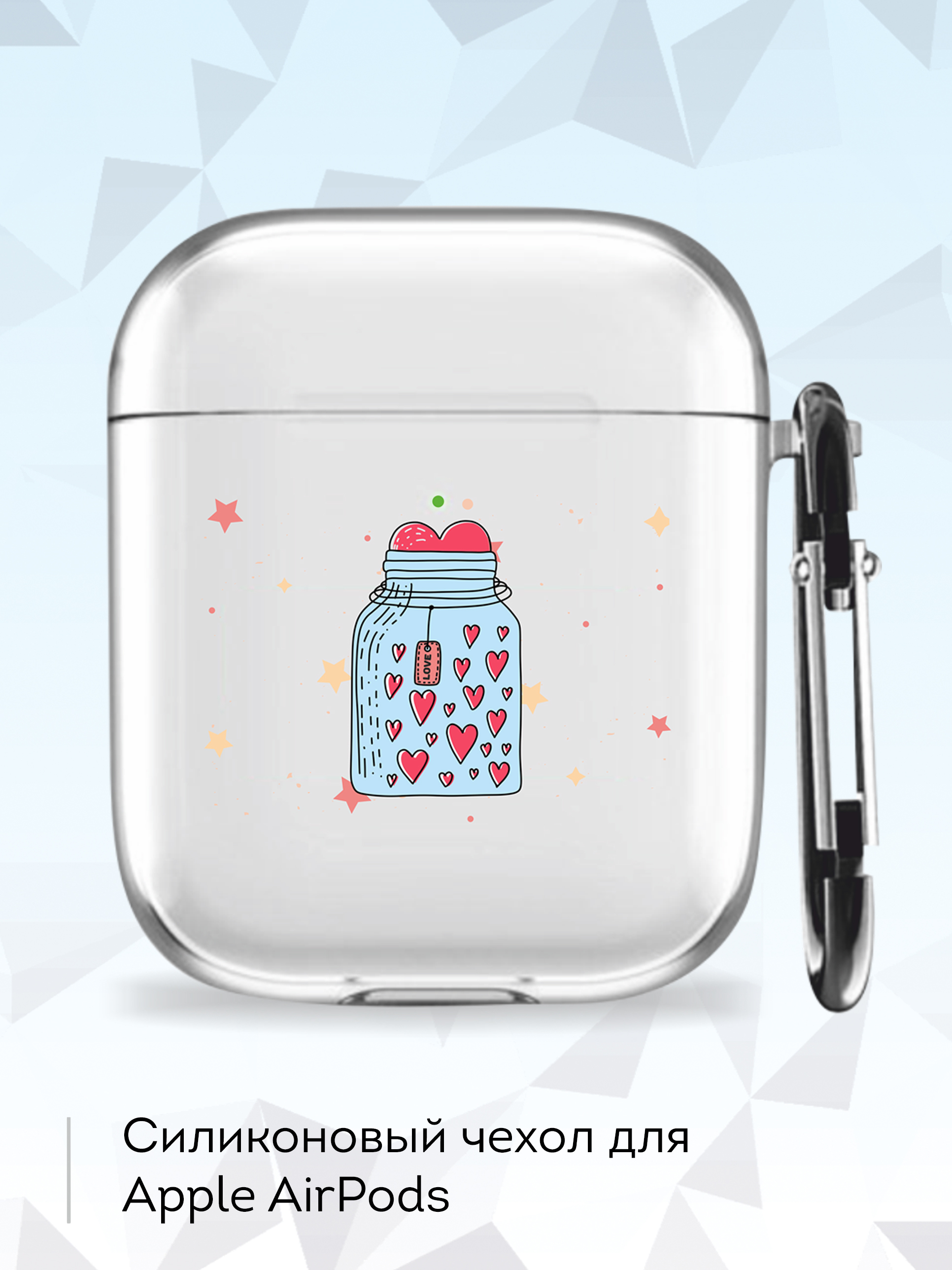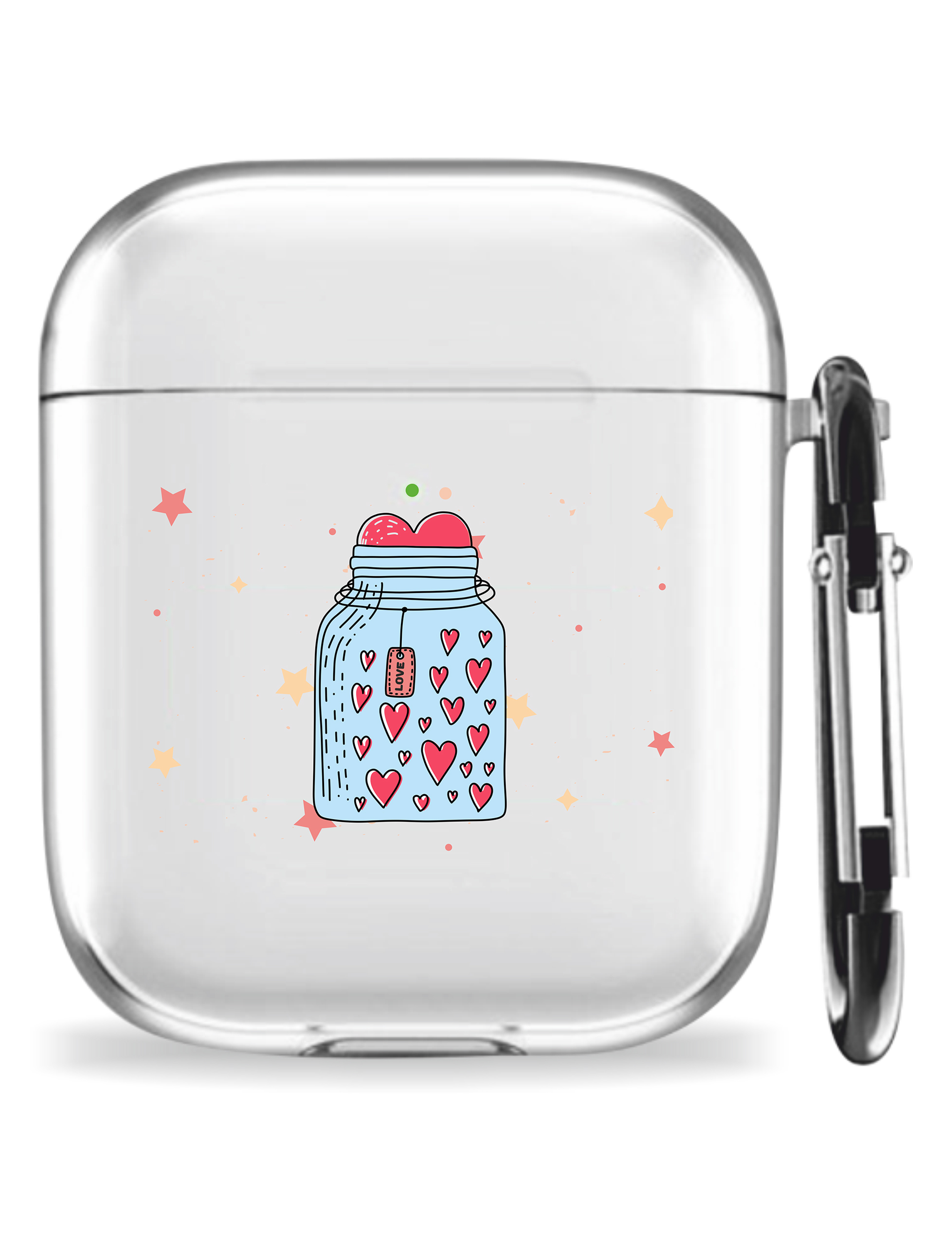 Силиконовый чехол для беспроводных наушников Mcover Apple AirPods 1 / 2, с карабином, принт Баночка с сердечками