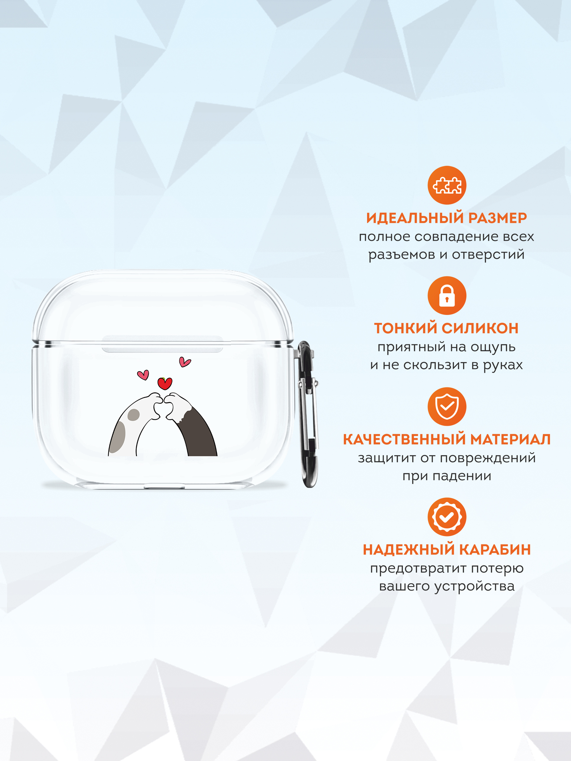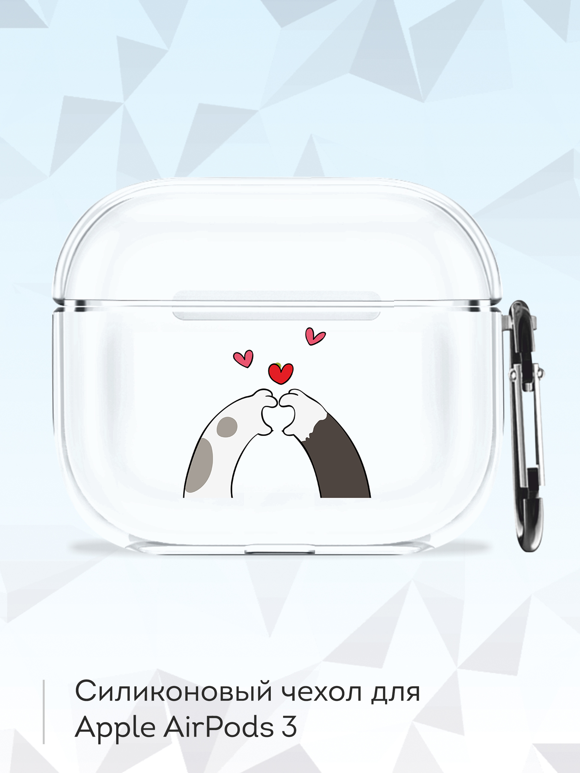 Силиконовый чехол для беспроводных наушников Mcover Apple AirPods 3, с карабином, принт Лапки с сердцем