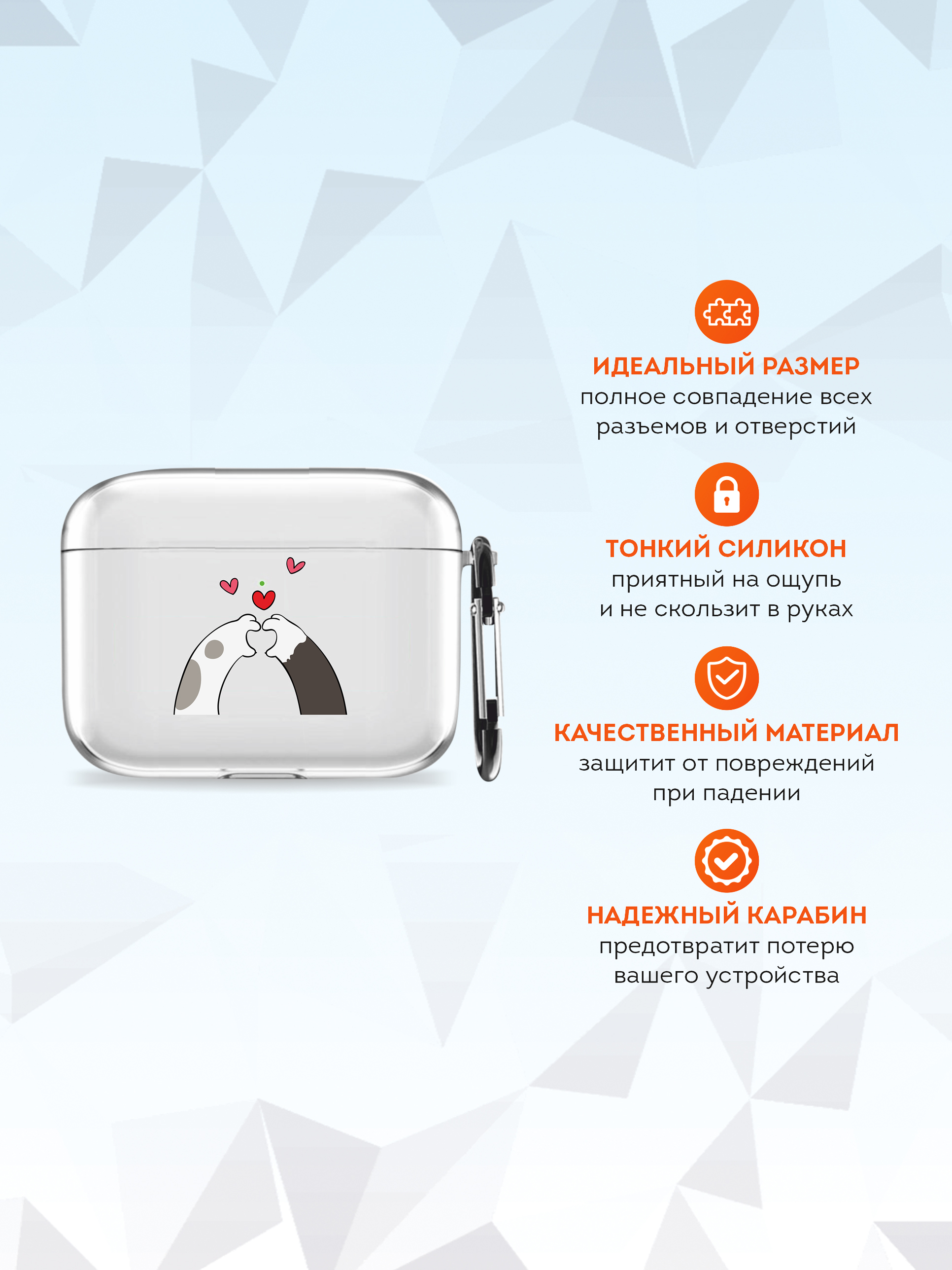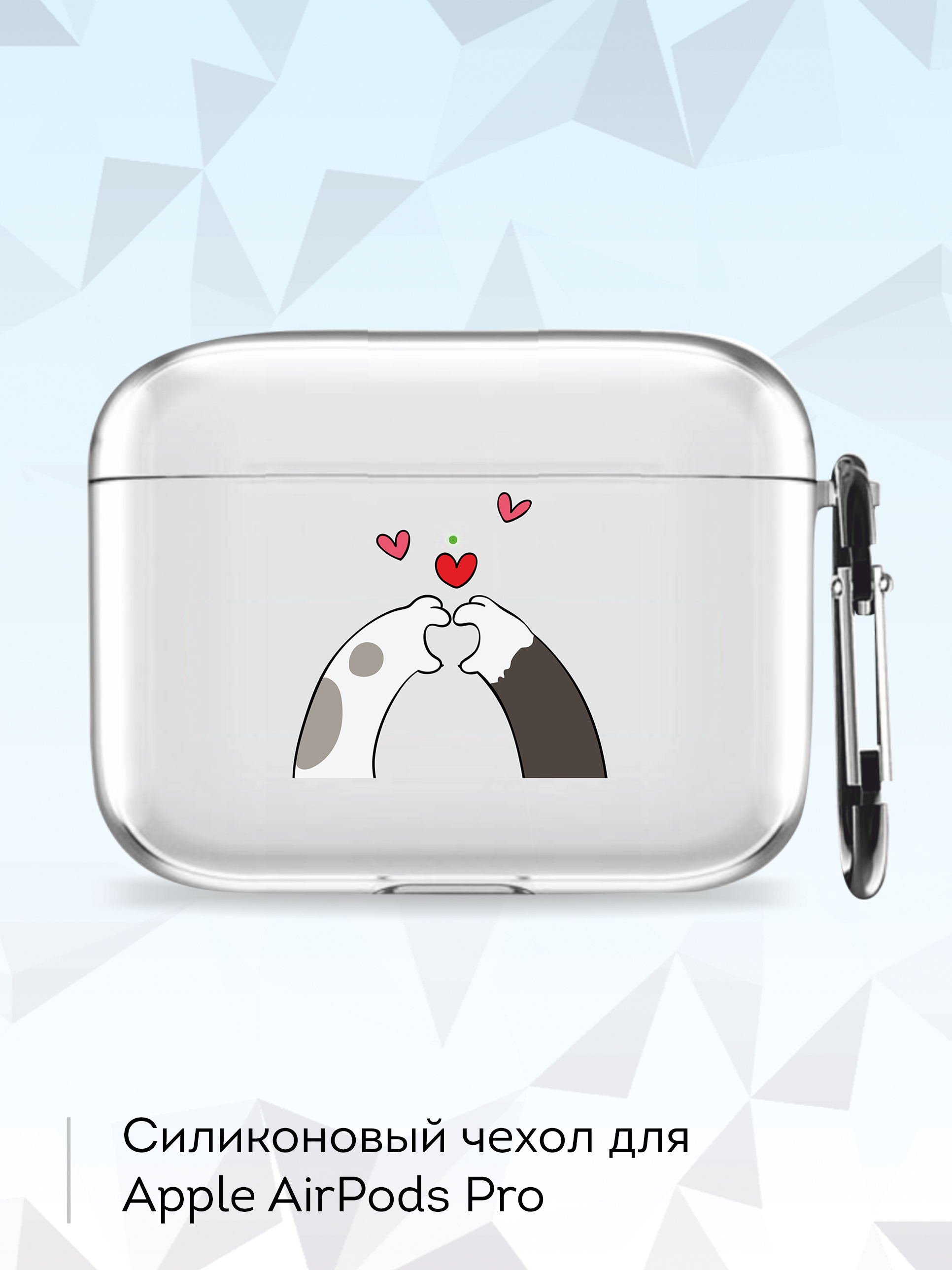 Силиконовый чехол для беспроводных наушников Mcover Apple AirPods Pro, с карабином, принт Лапки с сердцем
