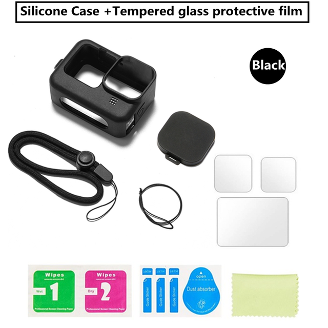Силиконовый чехол для GoPro Hero 12 11 10, черное закаленное стекло, защита экрана, защитная пленка, крышка для объектива, аксессуары для GoPro9