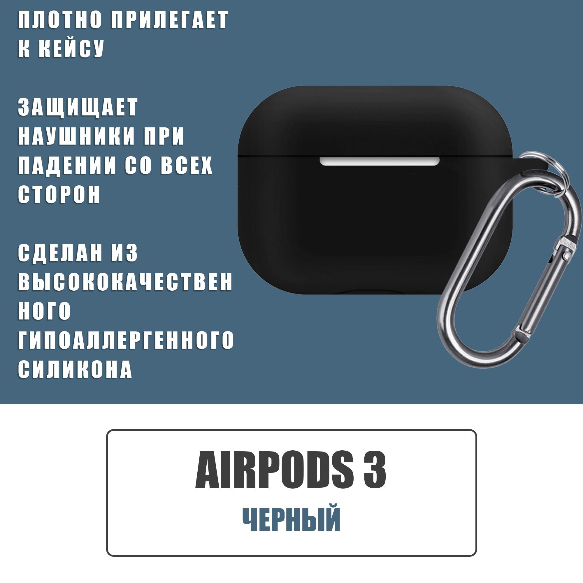 Силиконовый чехол для наушников AirPods 3 с карабином, Аирподс 3, ЧерныйСиликоновый чехол для наушников AirPods 3 с карабином, Аирподс 3, ЧерныйСиликоновый чехол для наушников AirPods 3 с карабином, Аирподс 3, Черный