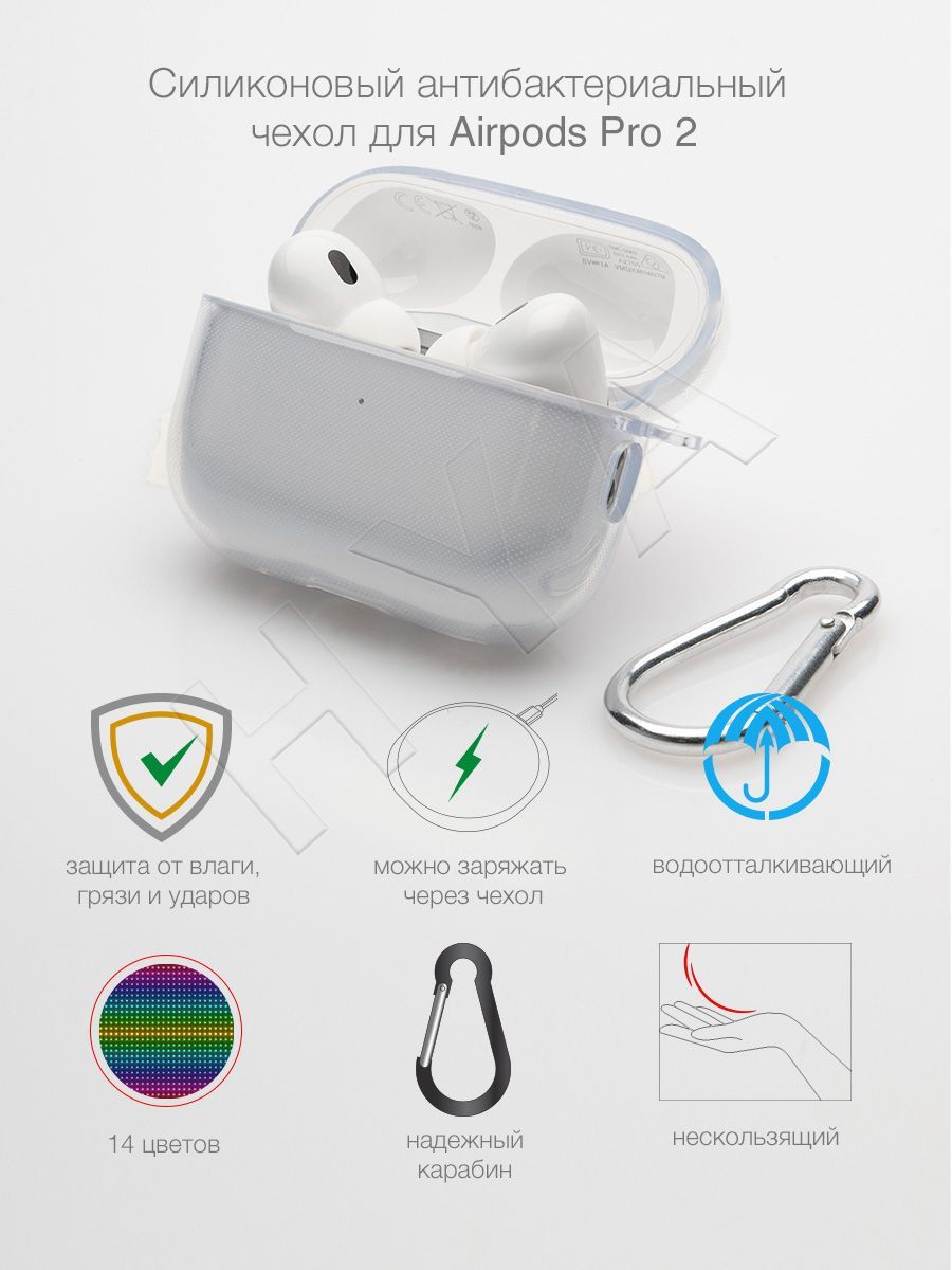 Силиконовый чехол для наушников Apple AirPods pro 2 / противоударный чехол на аирподс про 2 с карабином