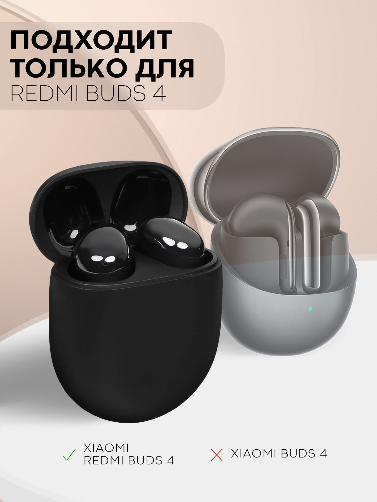 Силиконовый чехол для наушников TWS Xiaomi Redmi Buds 4 (Сяоми Редми Бадс 4 / Ксиоми Редми Будс 4 ) - 1 шт
