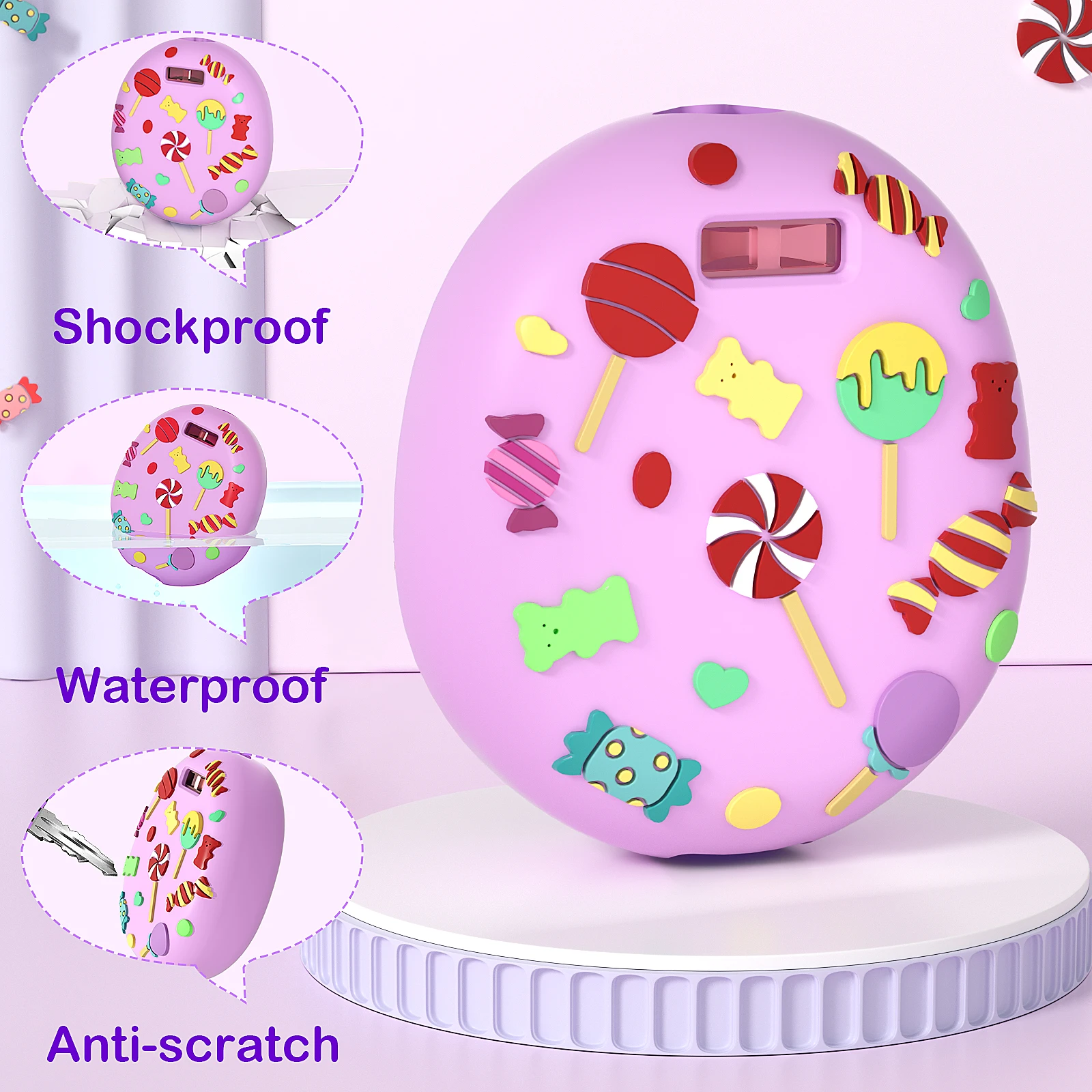 4. Портативный и стильный:Изысканный 3D-дизайн внешнего вида мультфильма с конфетами делает вашего электронного питомца более привлекательным и привлекательным. Регулируемая Конструкция шнурка позволяет легко работать во время игры, надежно удерживая палец. Когда он не используется, вы можете повесить его на сумку или брюки, чтобы его было удобно носить и носить.