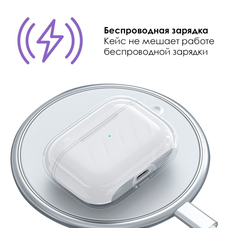 Описание: Силиконовый кейс для AirPods ProКейс поможет сохранить ваши наушники в первоначальном виде. Защитит от царапин и падений. А так же придаст им новый и интересный вид.Вырезы под зарядкуЧехол имеет технологический вырез под зарядку. Нет необходимости снимать чехол во время зарядки. Так же кейс не мешает беспроводной зарядке наушников.Легкая установкаКейс выполнен из двух деталей: основание и крышка. Легко установить на наушники, а ребристая внутренняя поверзность не даст деталям слететь с наушников. Карабин для переноскиКейс можно закрепить на рюкзаке, ремне или кармане.Наш ассортиментПрозрачные чехлыЗащитные стеклаКабели для зарядкиДержатели для смартфонов