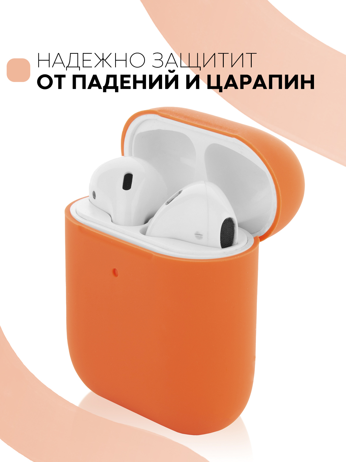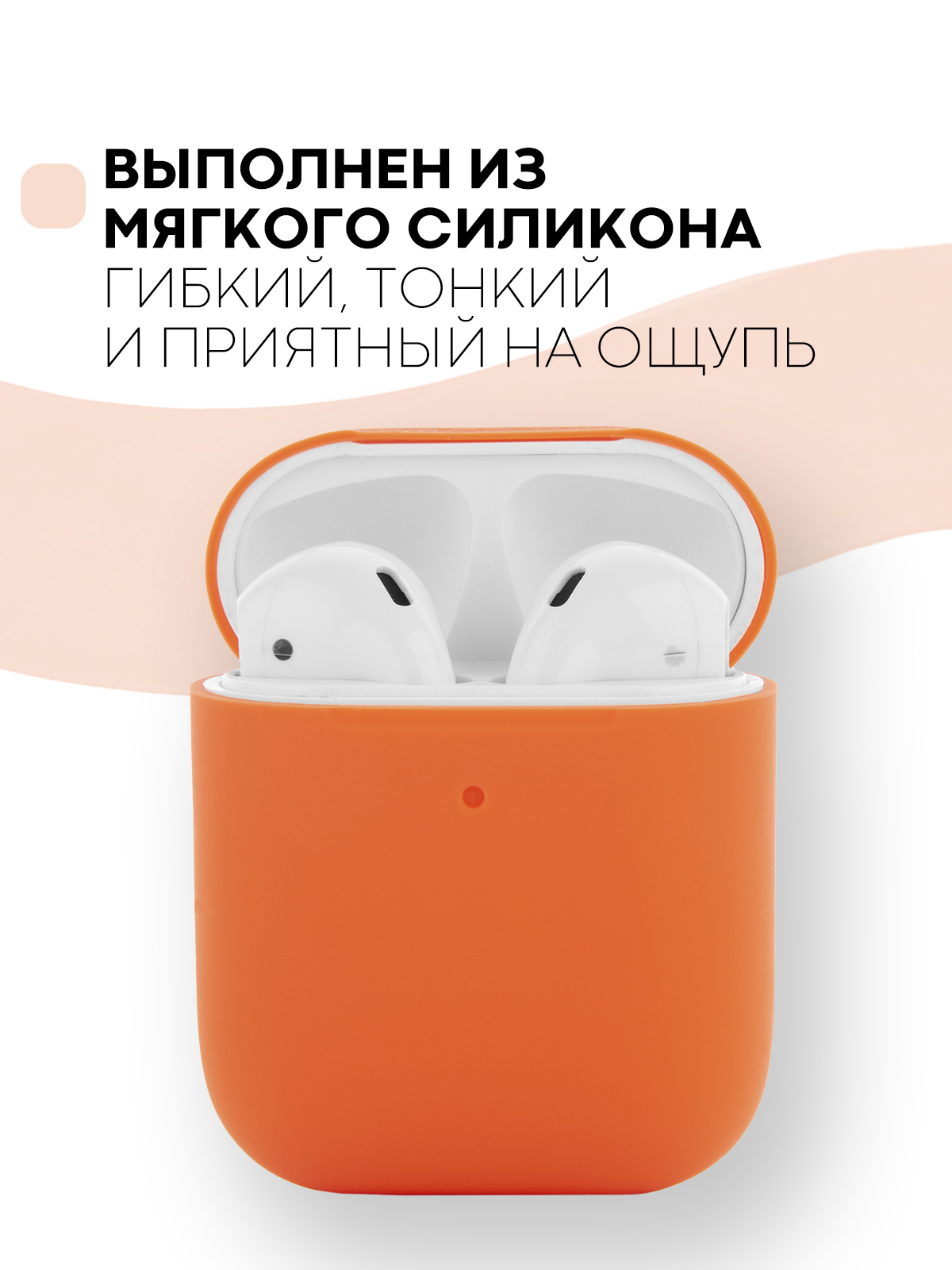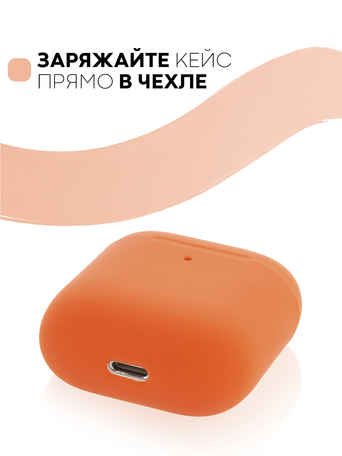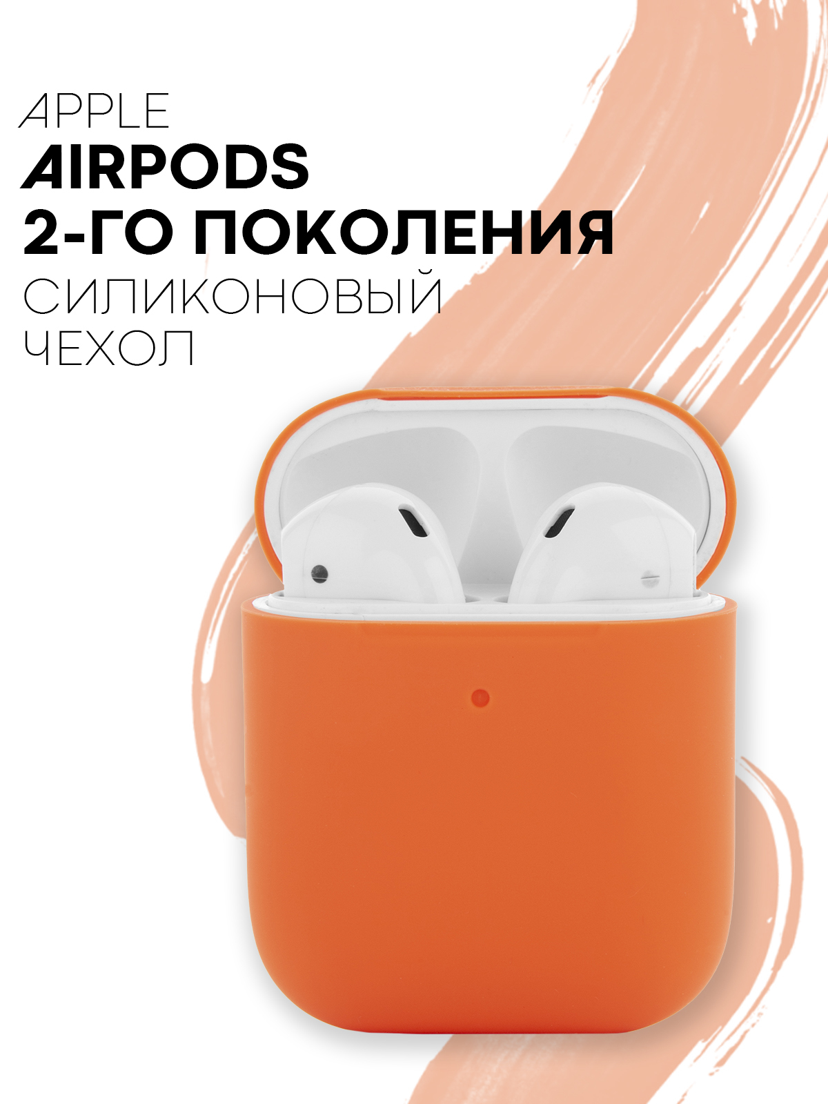 Силиконовый чехол КАРТОФАН для беспроводных наушников Apple AirPods 2 (Эпл Аирподс 2-го поколения), тонкий полимерный из качественного силикона с матовым покрытием, папайя