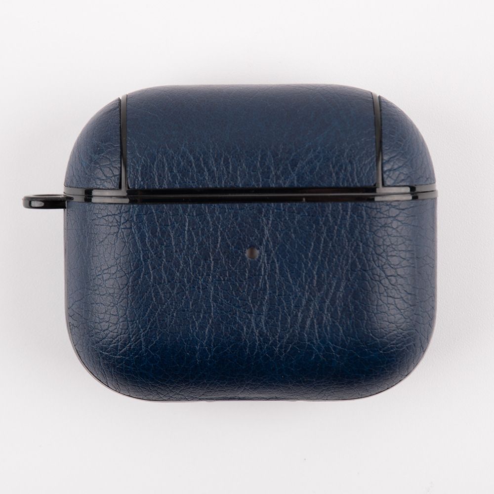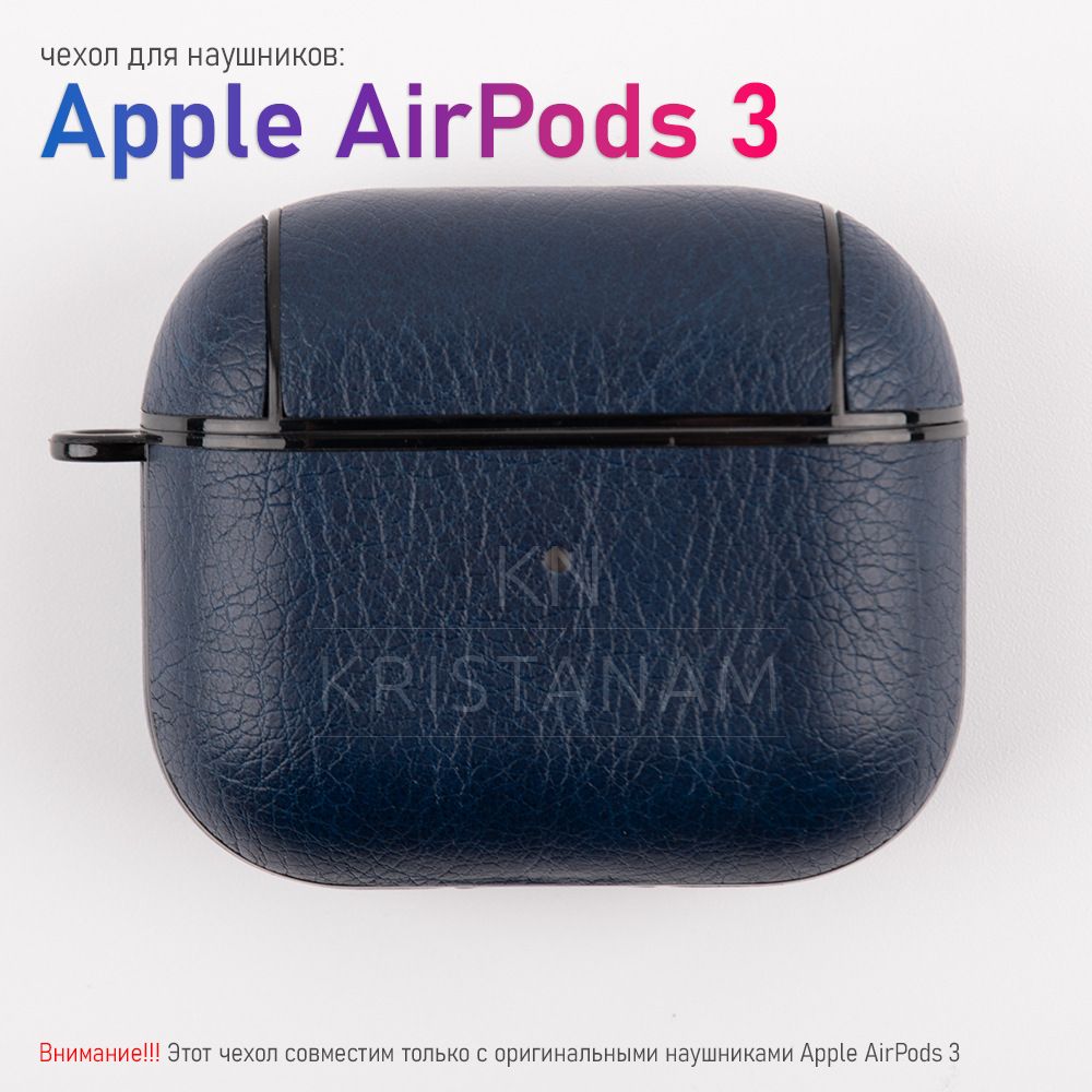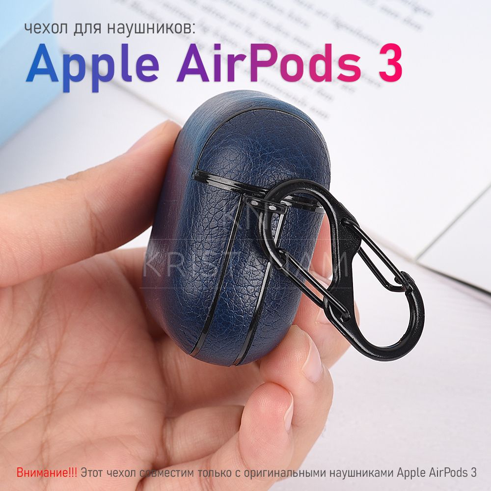 Силиконовый чехол KRISTANAM для наушников Apple AirPods 3 / кейс для аирподс 3 поколения / противоударный чехол для airpods 3 с карабином экокожа, темно-синий