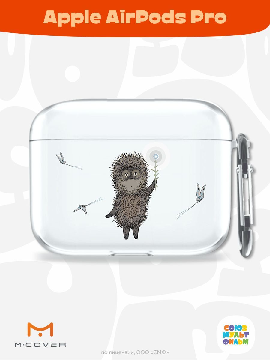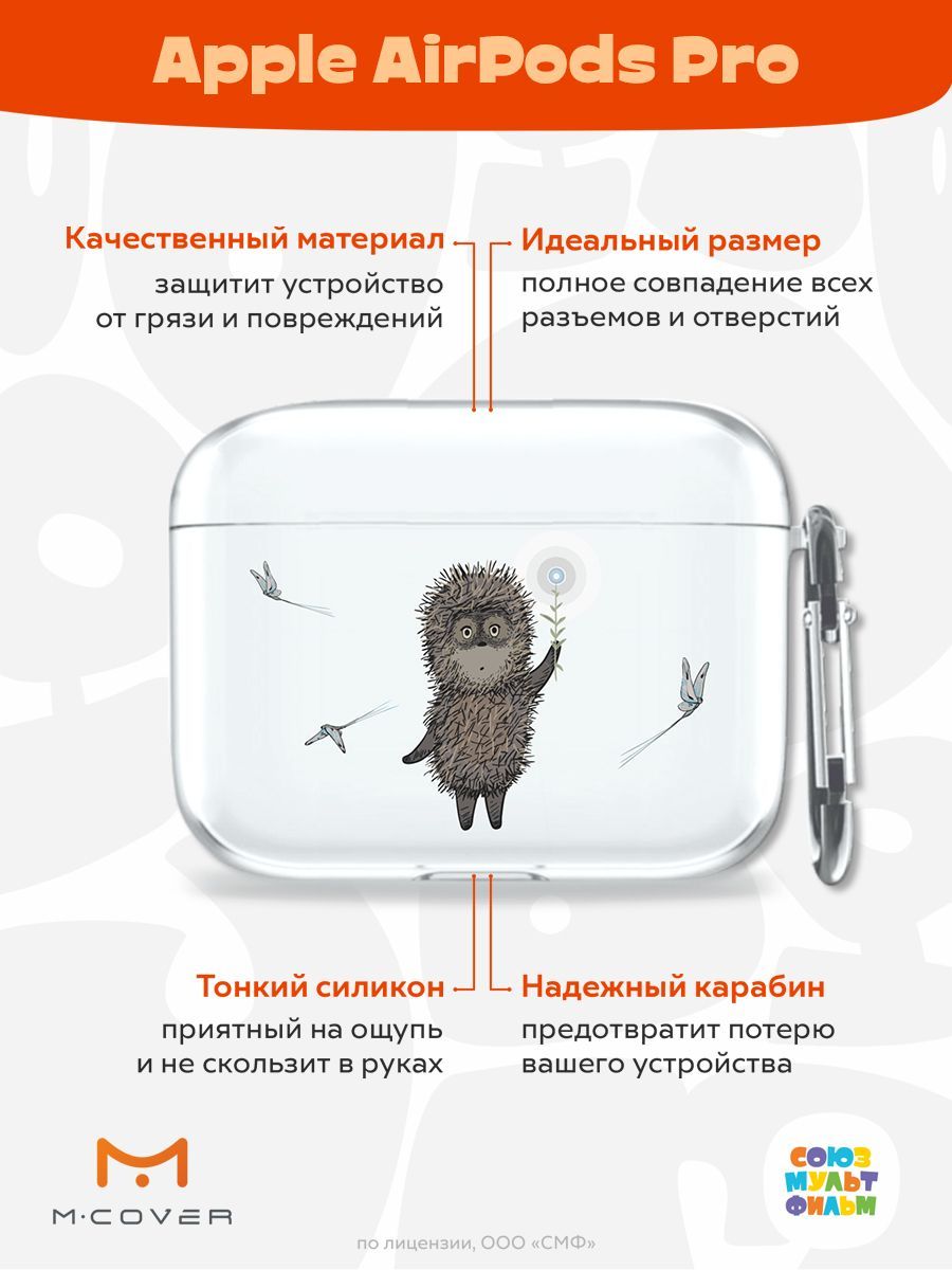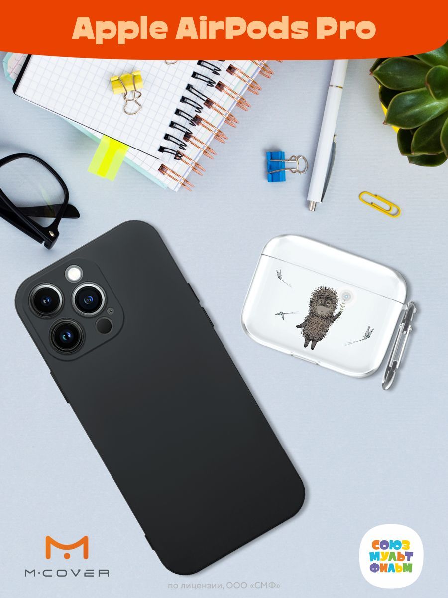 Силиконовый чехол Mcover для беспроводных наушников Apple AirPods Pro, с карабином, Союзмультфильм, Ежик в тумане и фонарь
