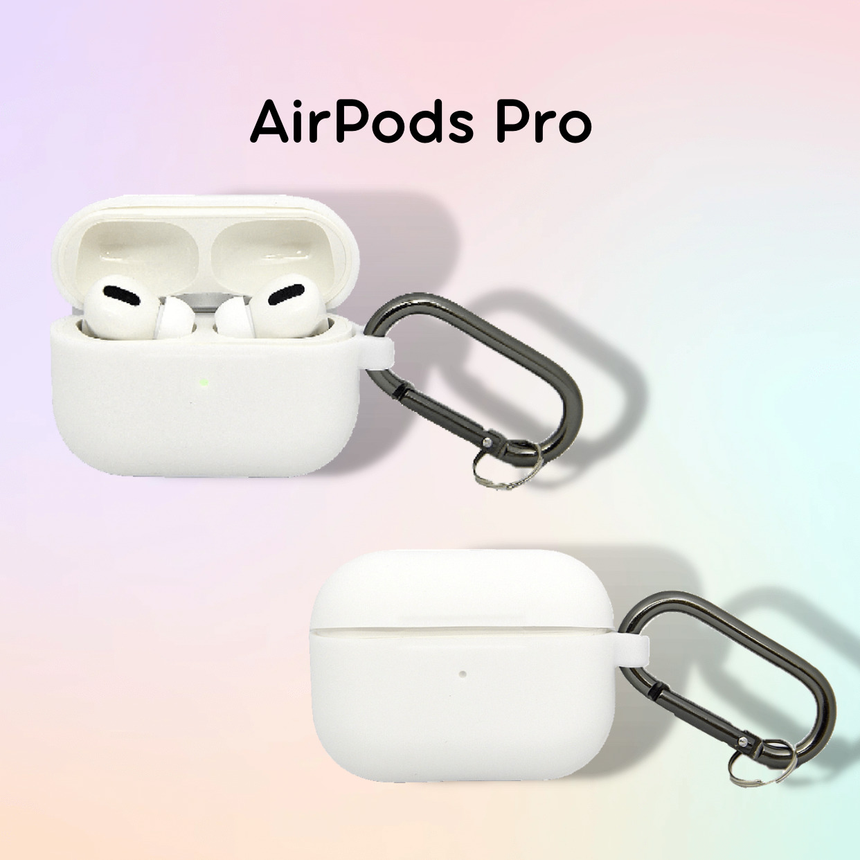 Силиконовый чехол тонкий c карабином для наушников Apple AirPods Pro / Pro 2 Белый светящийся
