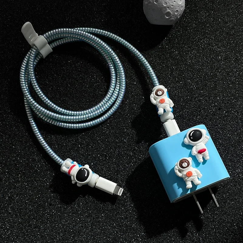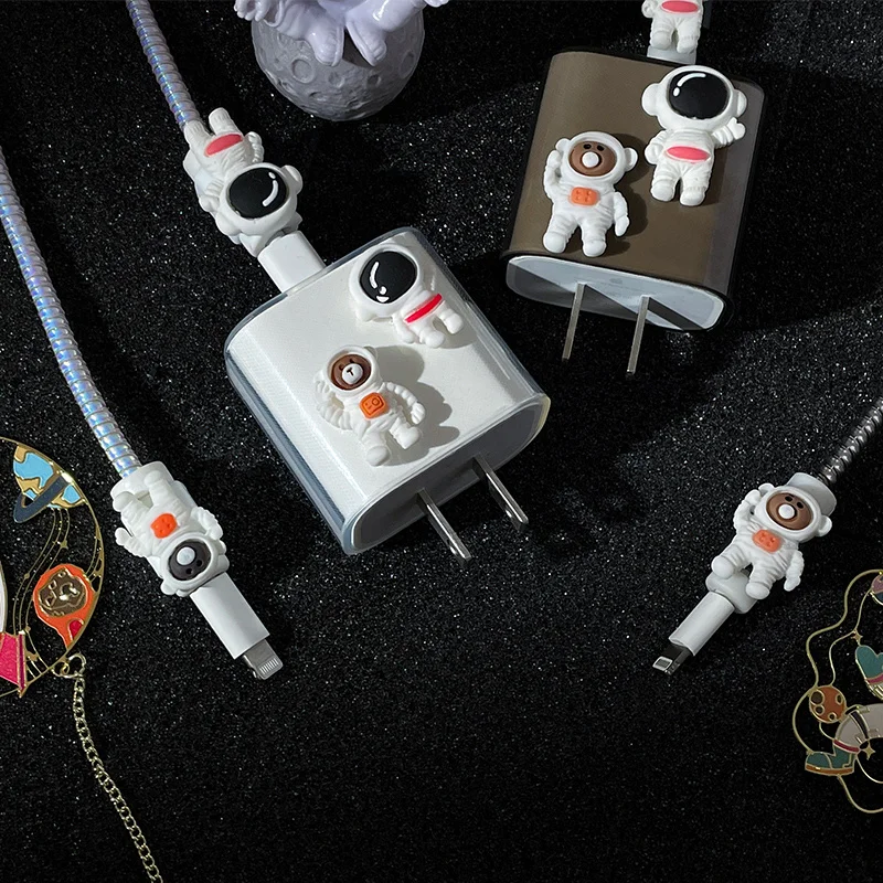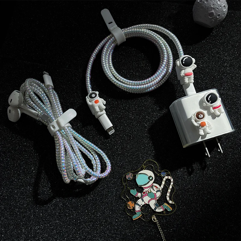 Силиконовый прозрачный чехол с рисунком астронавта для зарядки кабеля