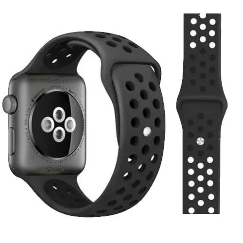 Силиконовый ремешок для Apple Watch 38-41 mm, series 1-8, SE, SE 2022, Ultra / Cпортивный браслет (для эпл вотч). Черный