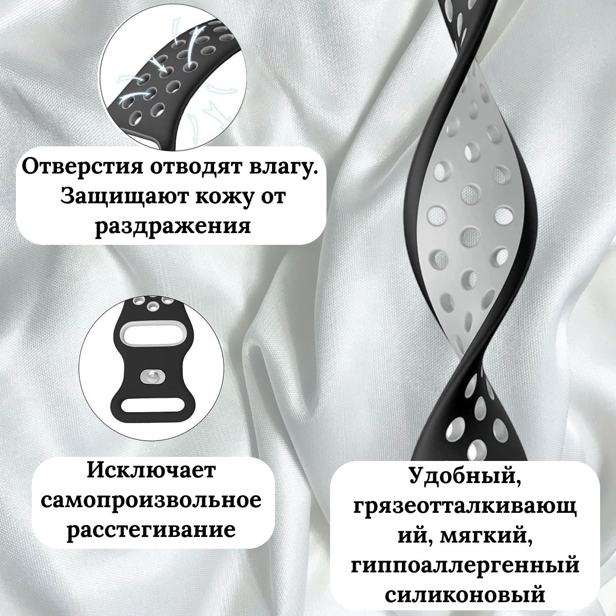 Независимо от того, насколько активным будет ваш день, ремешок для Apple Watch обеспечит комфортное ношение на протяжении всего дня. Он легкий, гибкий и дышащий, позволяя вашей коже свободно дышать. Благодаря специальным отверстиям на ремешке, воздух свободно циркулирует, предотвращая неприятное потоотделение и улучшая вентиляцию.