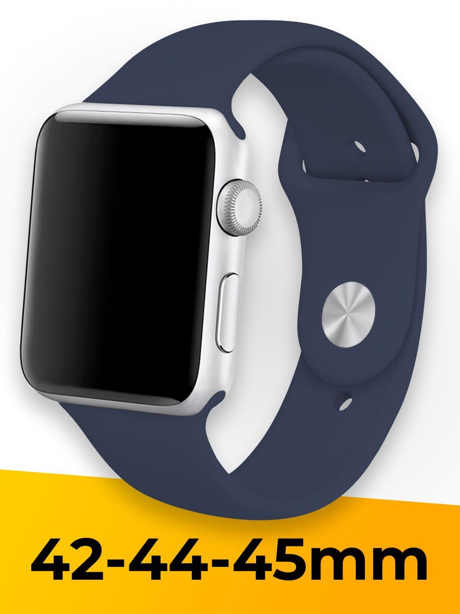 Силиконовый ремешок для Apple Watch 42-44-45-49 mm Sport / Спортивный браслет для умных смарт часов Apple Watch Series 1-8 и Эпл Вотч SE / Сменный ремешок для Эпл / Темно-Синий