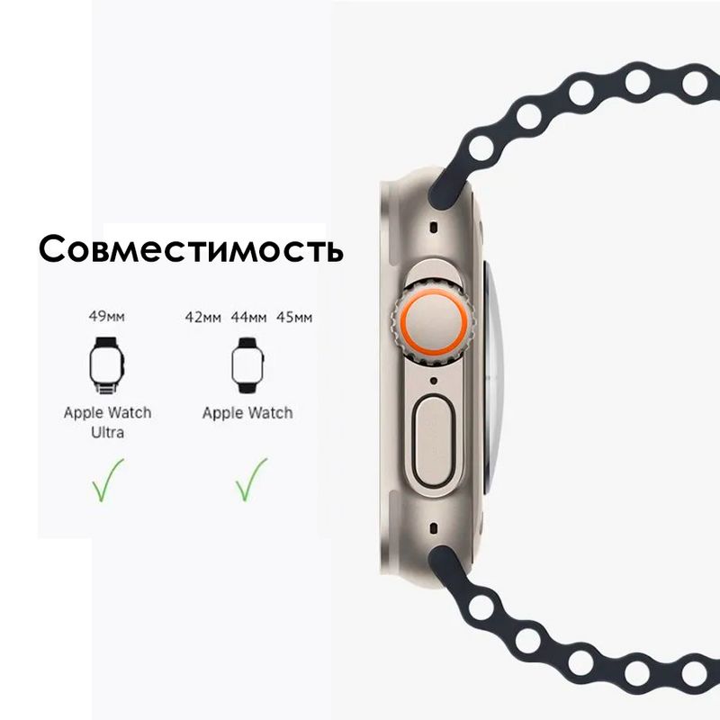Силиконовый ремешок для Apple Watch 42 мм, 44, 45 mm, 49/ браслет на эпл вотч Apple Watch Ultra, series 1 2 3 4 5 6 7 8 /SE/SE 2022 / ocean band