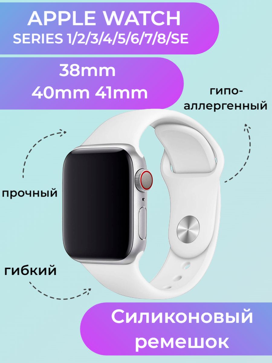 Силиконовый ремешок для Apple Watch (для эпл вотч), 38-40-41 мм, series (серия) 1 2 3 4 5 6 7 8 SE, универсальный размер, белый