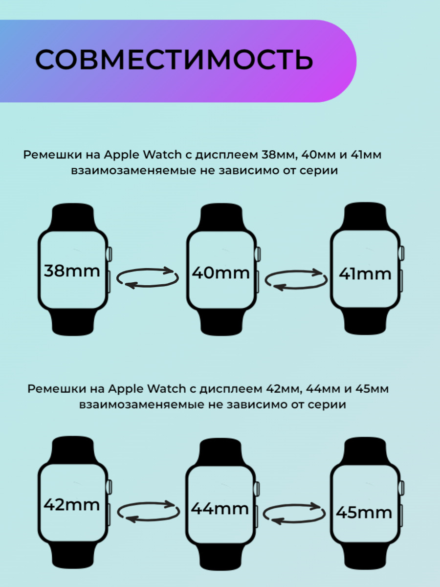 Текстовое описание изображенияЗаголовокРемешки для Apple Watch с дисплеями 42мм, 44мм и 45мм взаимозаменяемые не зависимо от серииТекст при отключенной в браузере загрузке изображенийЗаголовокНАЖАТЬТекст при отключенной в браузере загрузке изображенийЗаголовокСДВИНУТЬТекст при отключенной в браузере загрузке изображенийЗаголовокУСТАНОВИТЬТекстовое описание изображенияЕще больше ремешков и других аксессуаров для часов и телефонов можно увидеть в нашем магазине или нажав на картинку выше с ПК