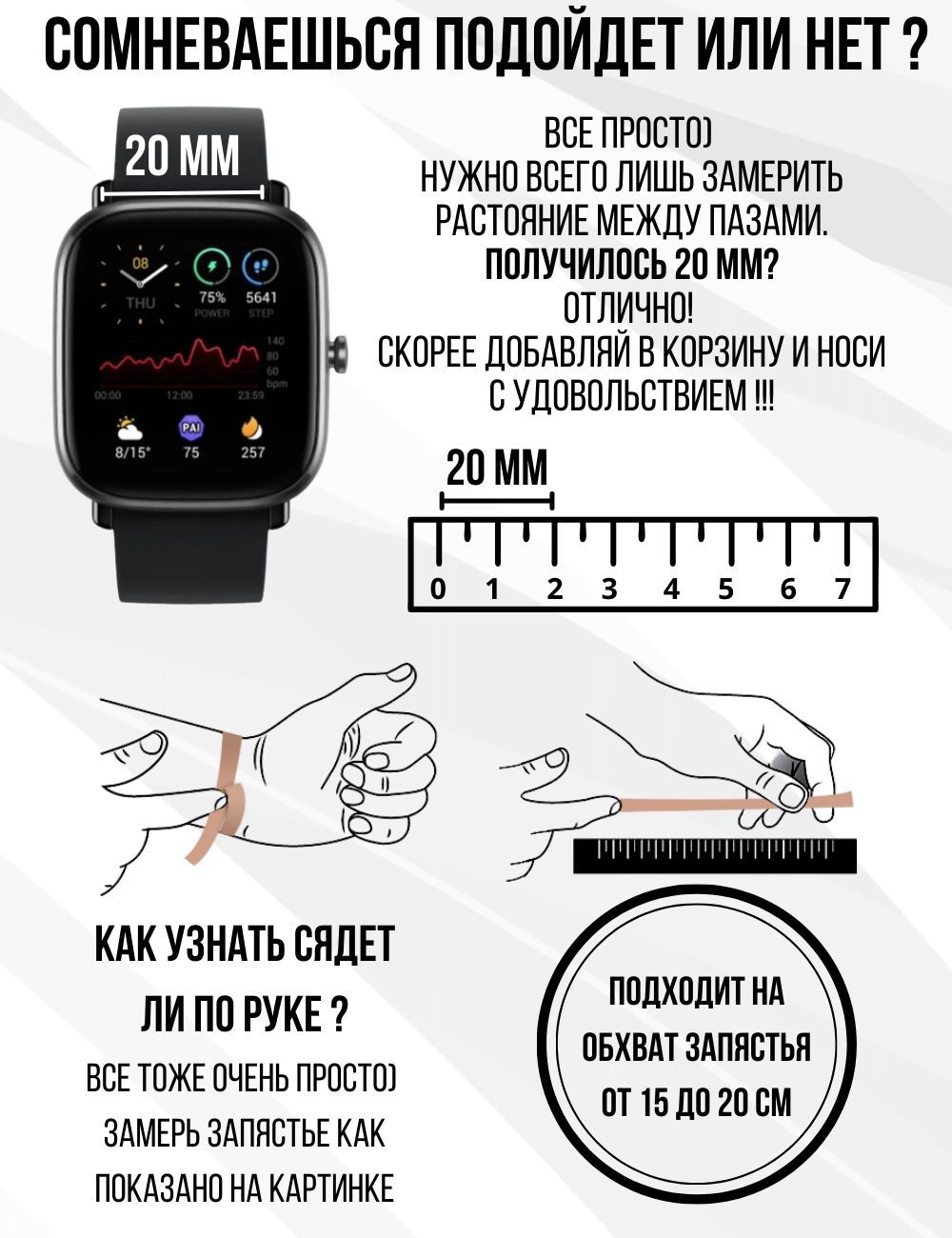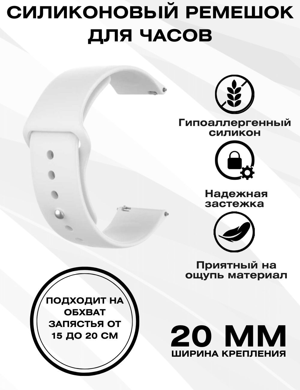 Описание: Силиконовый ремешок 20 мм для умных часов. Браслет на часы 20 мм предназначен для ежедневного использования, как для мужчин, так и для женщин любого возраста. Сменный ремешок не выгорает на солнце, а значит его можно носить сколь угодно, не боясь, что за лето он потеряет свой цвет. Силиконовый ремешок 20мм прост в ношении и уходе. Ремешок очень мягкий и идеально прилегает к вашему запястью.