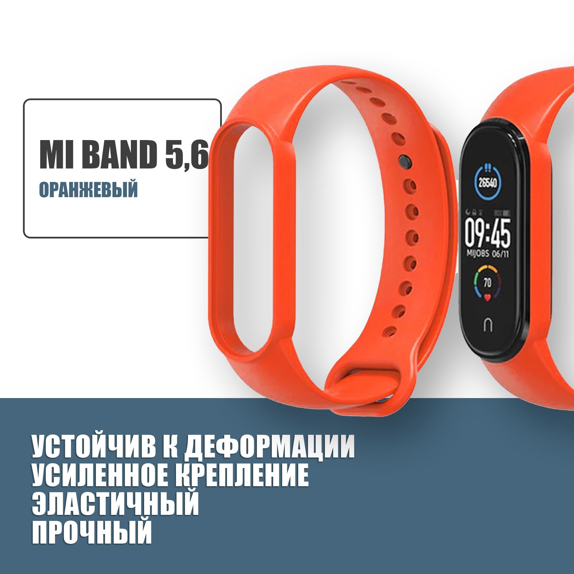 Силиконовый ремешок для фитнес-браслета Xiaomi Mi Band 5 и Mi Band 6, ремешок для смарт- часов сяоми ксиоми, Оранжевый