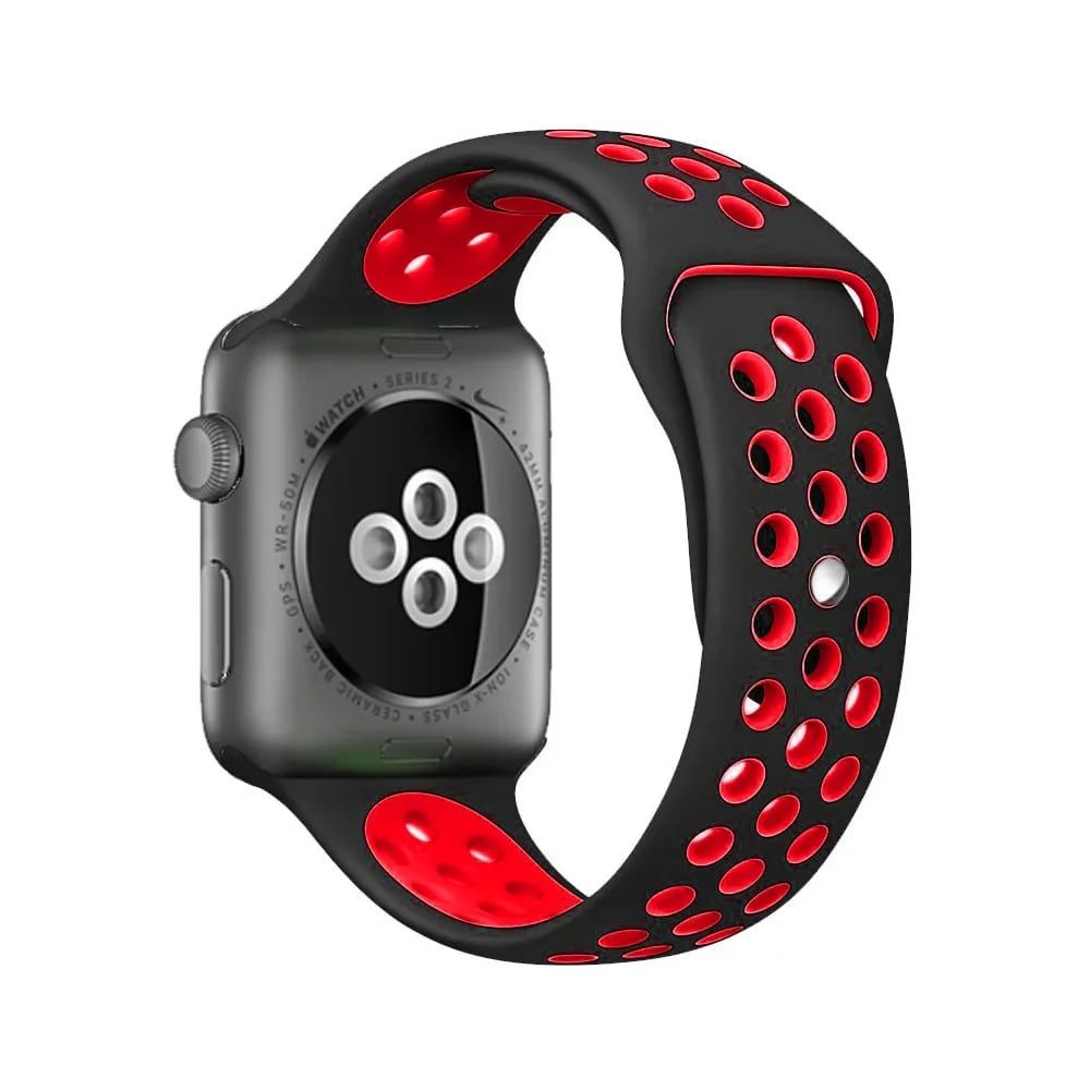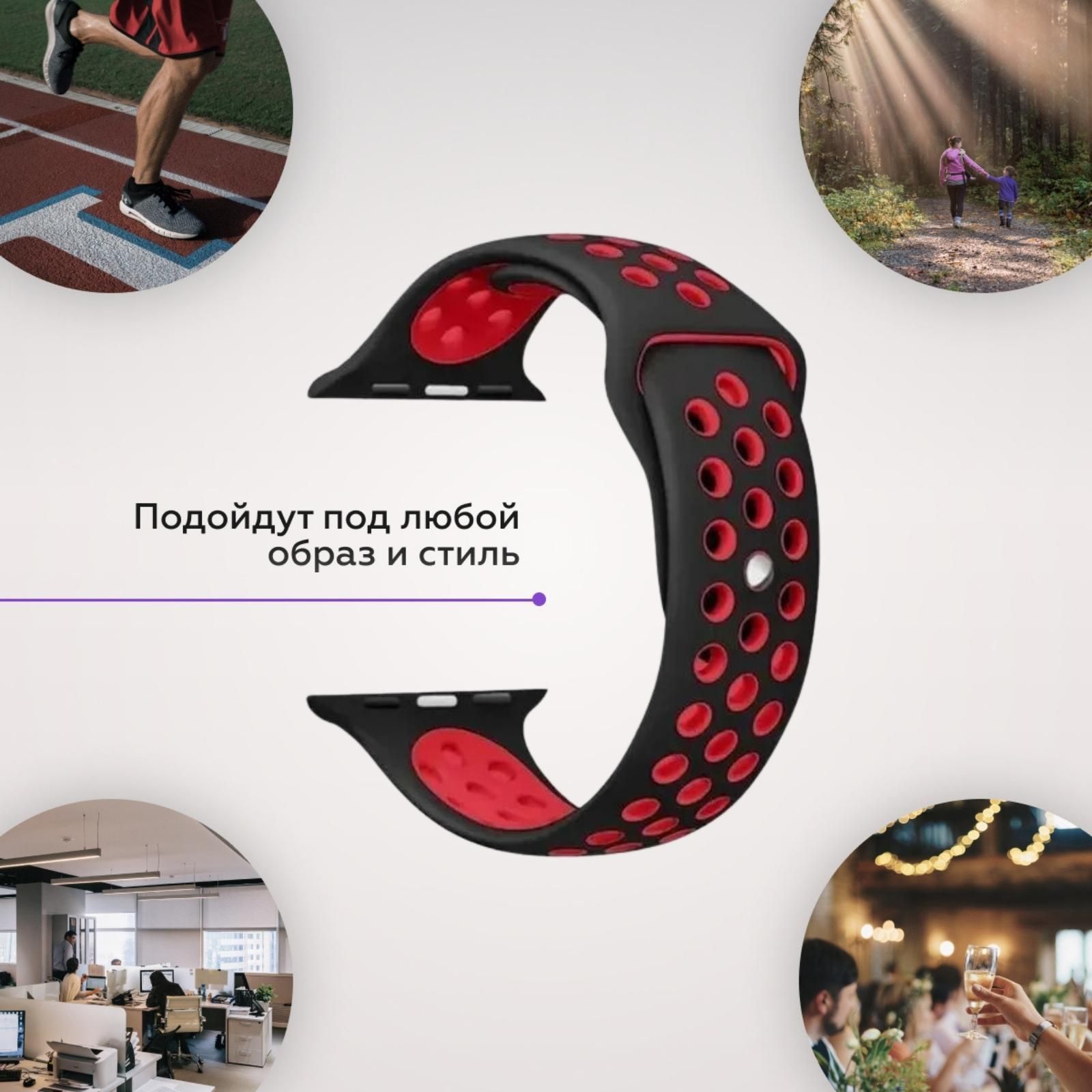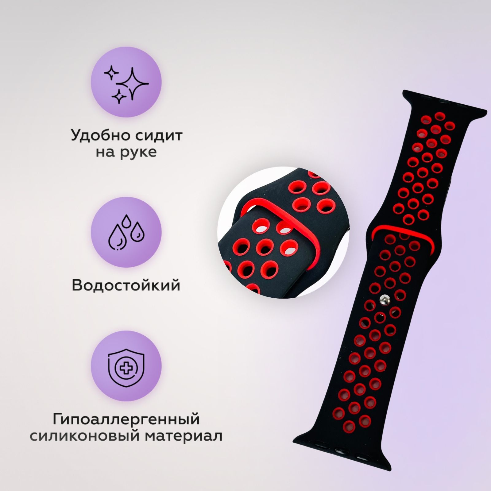 Силиконовый ремешок для смарт часов Apple Watch, 42/44/45/49 мм, series 1-8, браслет спортивный с порами для умных смарт часов эппл вотч, черный красный