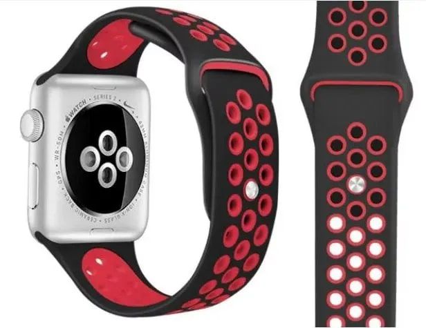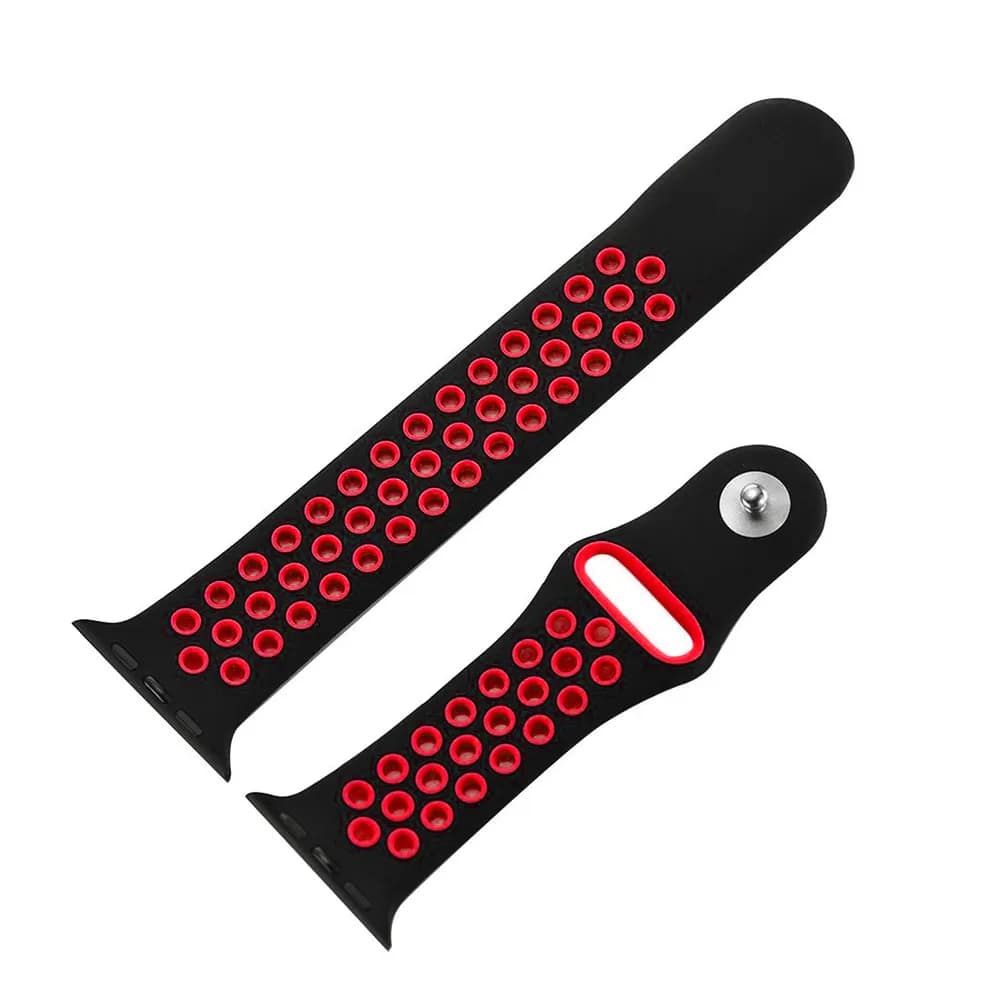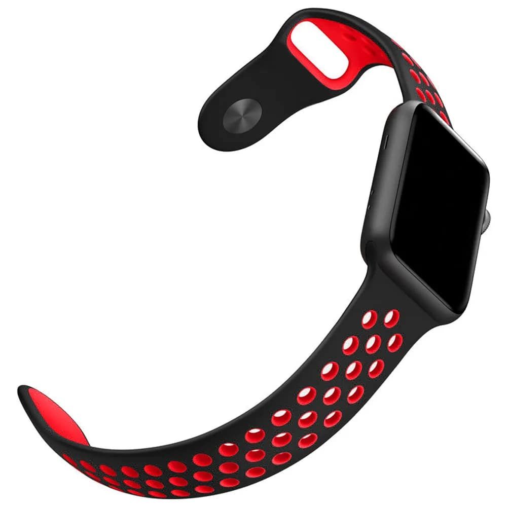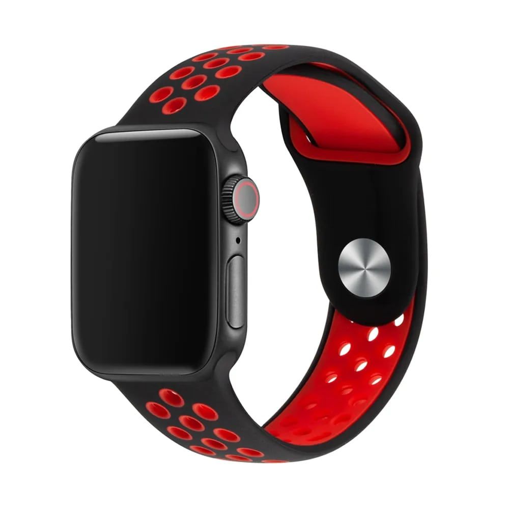 Силиконовый ремешок для смарт часов Apple Watch, 42/44/45/49 мм, series 1-8, браслет спортивный с порами для умных смарт часов эппл вотч, черный красный