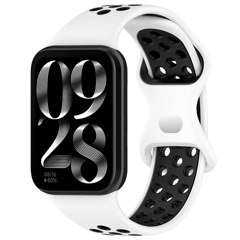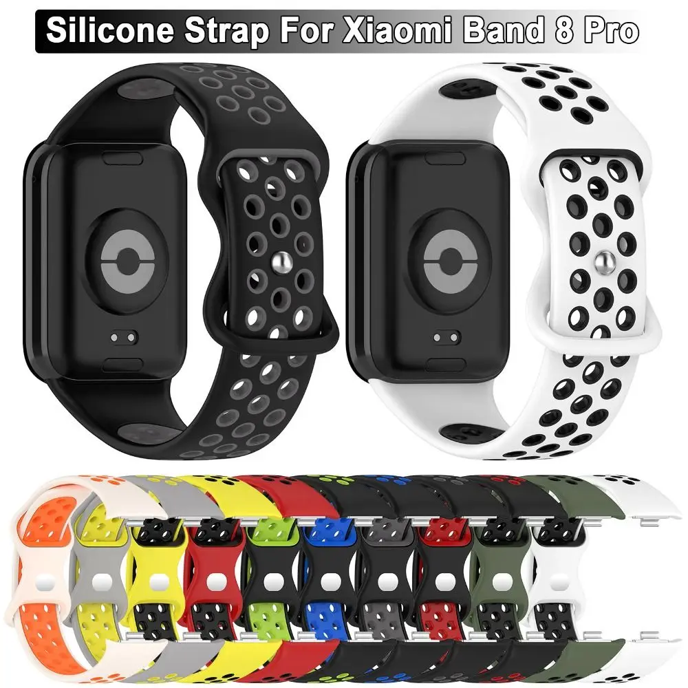 -Силиконовый спортивный ремешок с гарантией высокого качества. -Двухцветный дышащий сменный Браслет для защиты поверхности ремешка от ежедневных повреждений. -Экологичный материал и простота установки. -Все виды цветов на выбор и сменный спортивный браслет. -Изготовлен из силиконового материала, безвредного для человеческого тела, износостойкого и устойчивого к царапинам. Подходит для Xiaomi Band 8 Pro В комплект входит: 1 сменный ремешок для часов (ТОЛЬКО ремешок, умные часы в комплект не входят)