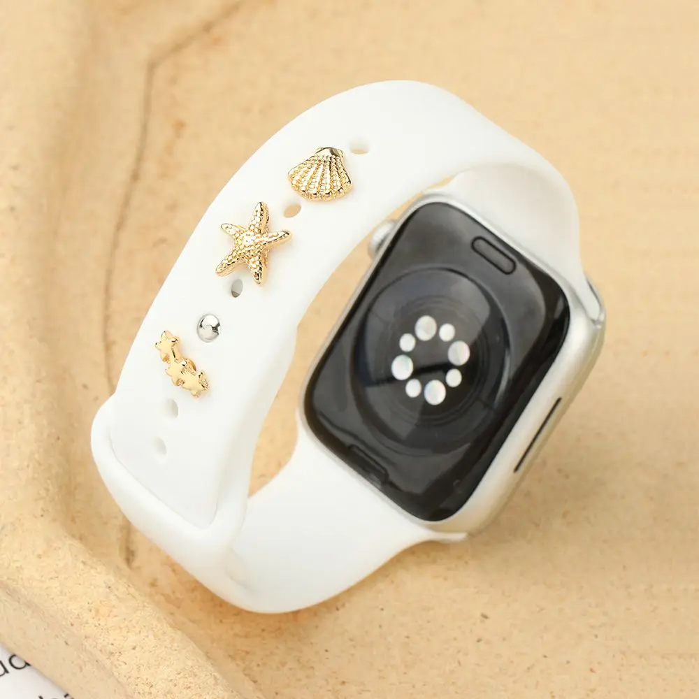 Силиконовый ремешок в форме морской звезды, декоративные гвозди для браслета Apple Watch, шармы, металлические Креативные аксессуары с заклепками для iwatch