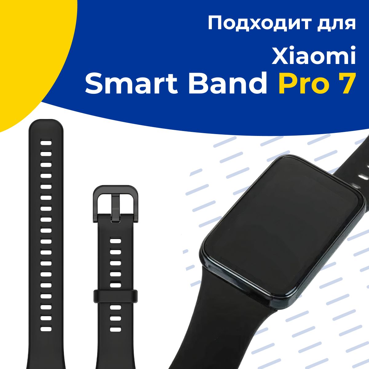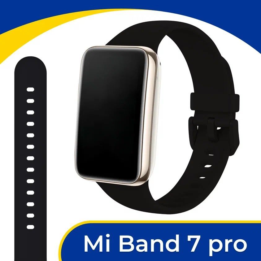 Силиконовый спортивный ремешок на руку для умного смарт браслета Xiaomi Mi Band 7 Pro / Резиновый сменный ремень на фитнес трекер Сяоми Ми Бэнд 7 Про, Черный