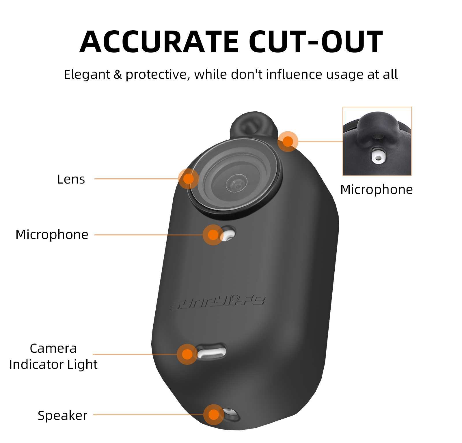 Он специально разработан для Insta360 GO 3, со звуковыми отверстиями, зарезервированными для обеспечения впечатлений от съемки; вентиляционные отверстия на задней панели выдолблены, чтобы учесть проблему нагревания камеры GO 3 при съемке.